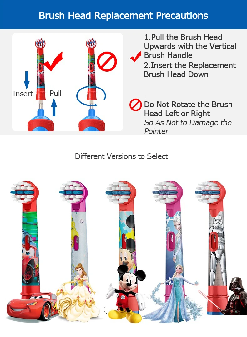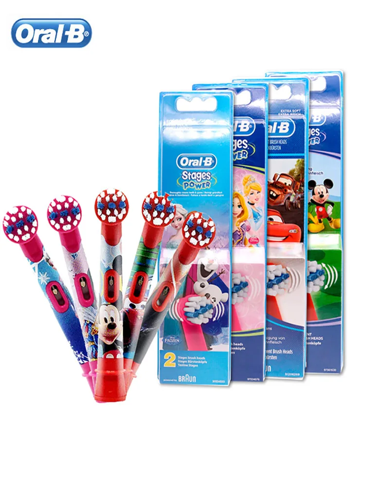 Оригинальные сменные щетки Oral B с героями мультфильмов для Oral B, детские электрические зубные щетки с мягкими щетинками, сменные насадки