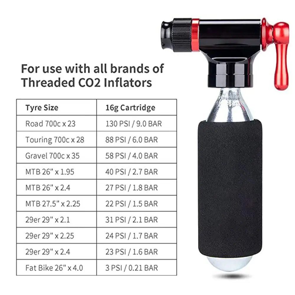 1、Value Kit: The CO2 Inflator Set (CO2 Cartridges x 4/ CO2 Inflator/ insulate sleeve) is a new standard of threaded CO2 Cartridge, perfect for whether your going on tough mountain range rides, or in need of fast air pressure during hot pursuit racing! With the 16g threaded cartridges, it can fill a large MTB tire.Смотрите так же другие товары: