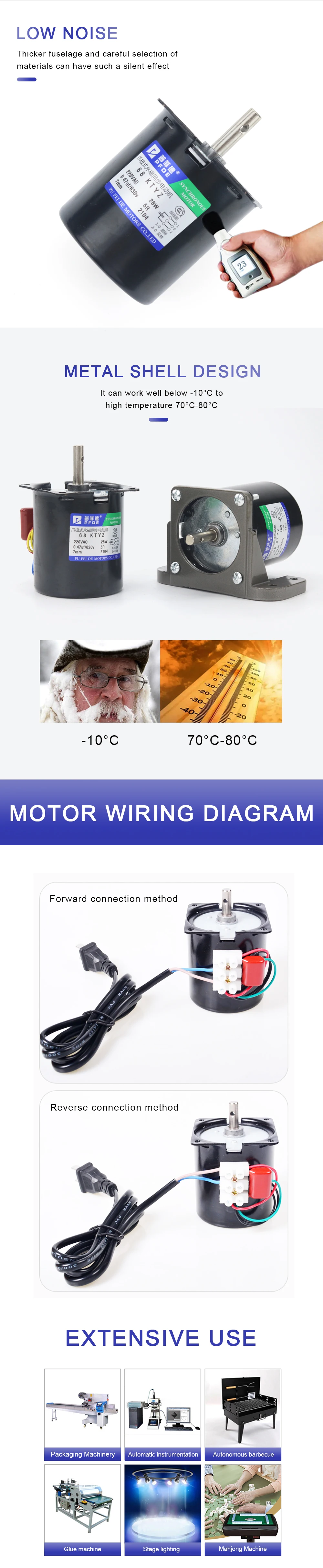 7. Выдающиеся особенности двигателя: двигатель является синхронным двигателем с постоянным магнитом; Внутренний-это металлические шестерни; Низкая скорость и низкий уровень шума 30 дБ; Поддержка непрерывной работы в течение 24 часов; Регулировка скорости не поддерживается ed; 5000 часов при нормальном режиме Применение; Применение высокого качества материалов; Маленький размер; Высокий крутящий момент; Низкое энергопотребление; Светильник Легкий в использовании