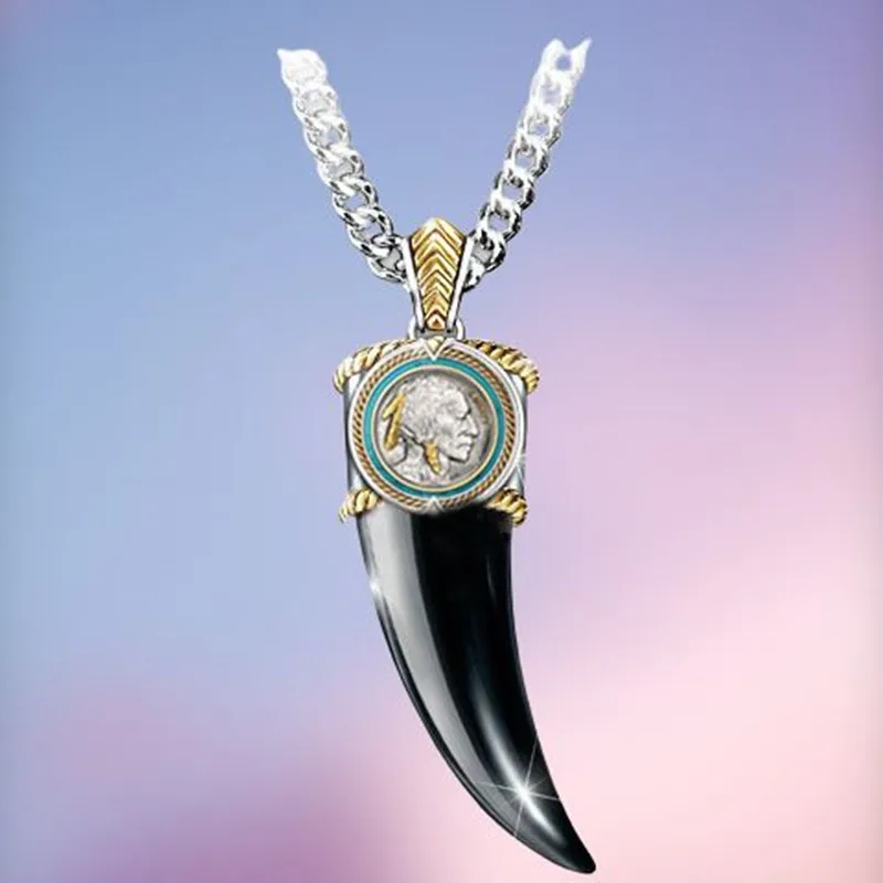 Винтаж агат камень падение ожерелья Новый буйвола рога Полумесяца форма кулон ожерелья черный коричневый ювелирные изделия Пара юбилей подарок