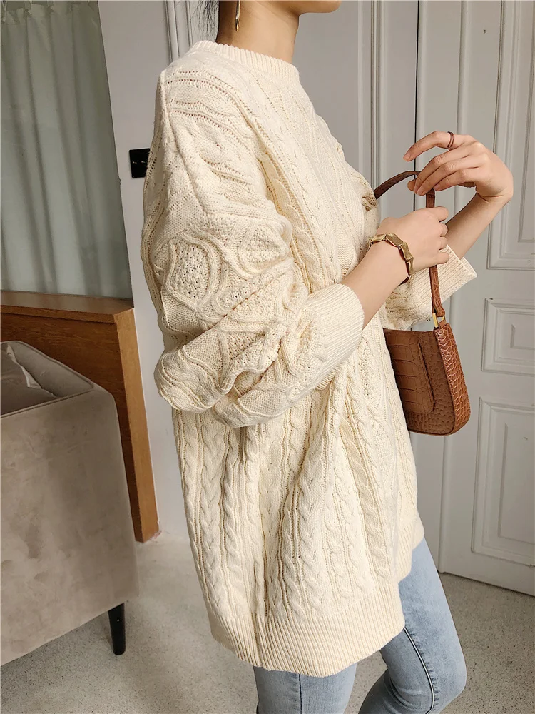 Женский трикотажный свитер однотонный пуловер с длинным рукавом коричневый