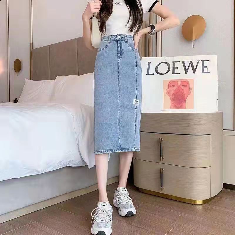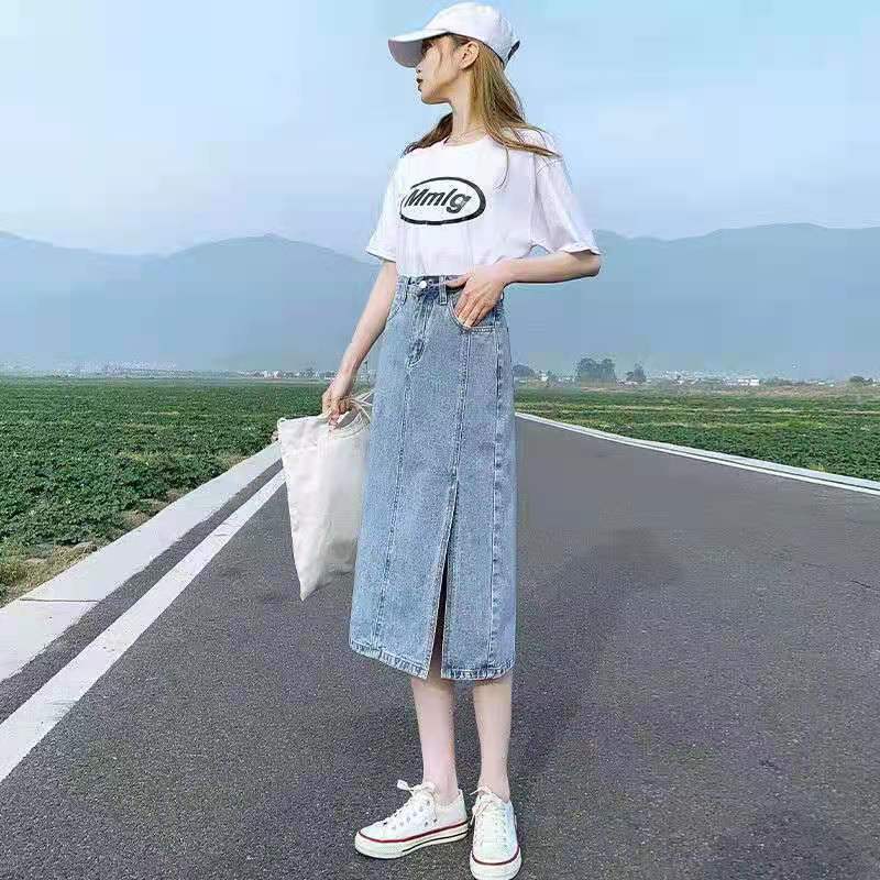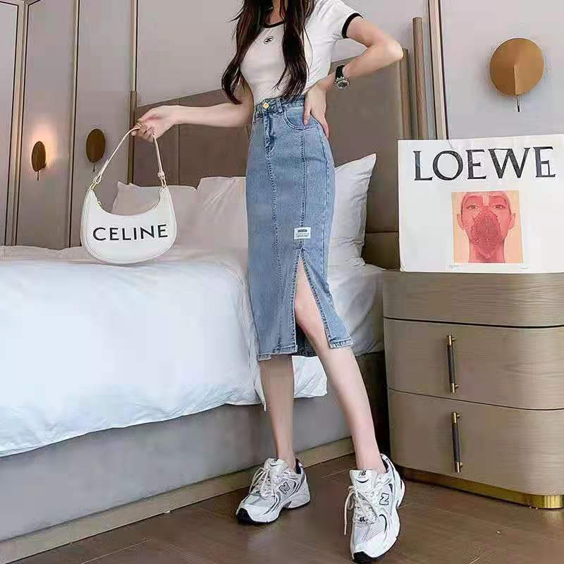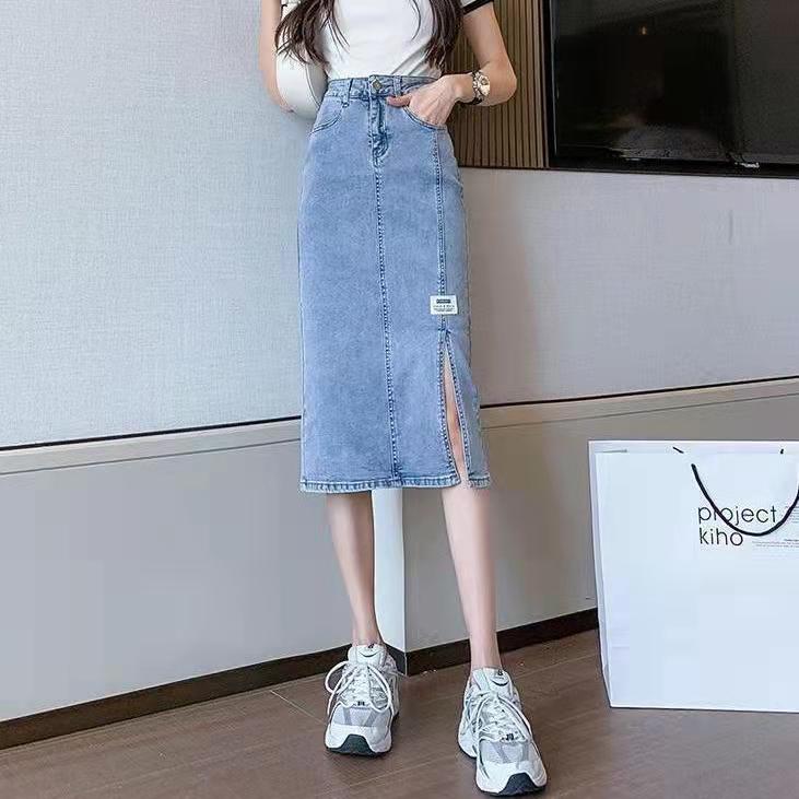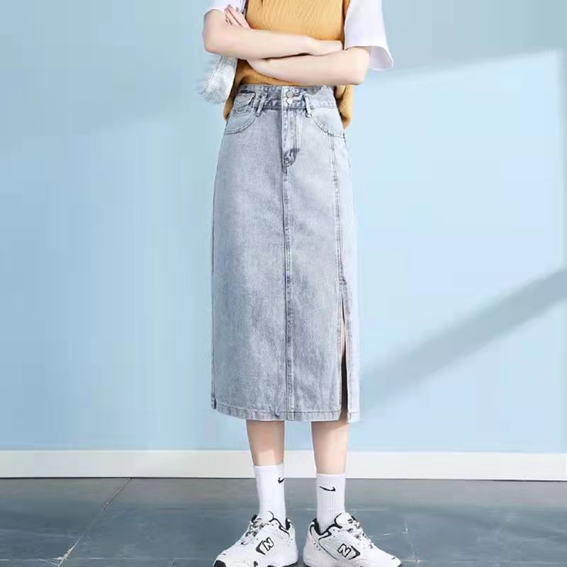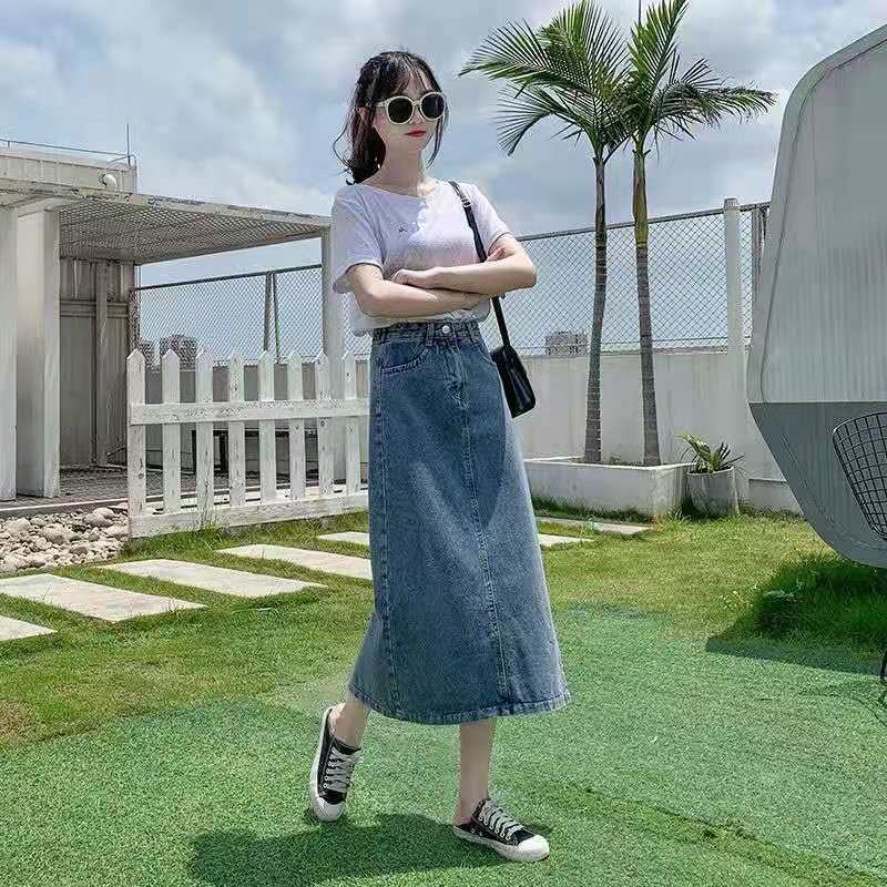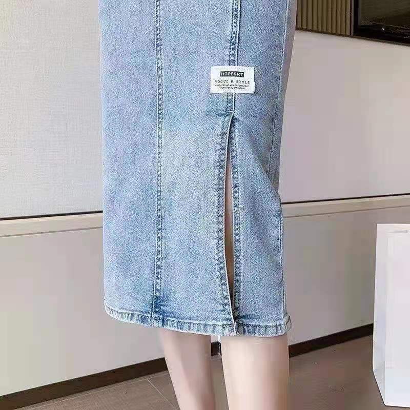 2022 летняя длинная юбка для беременных джинсы миди юбки светильник синий Разделение с высокой талией, повседневные джинсовые шорты в винтажном стиле комплект эластичной одежды женский Harajuku Y2K юбки