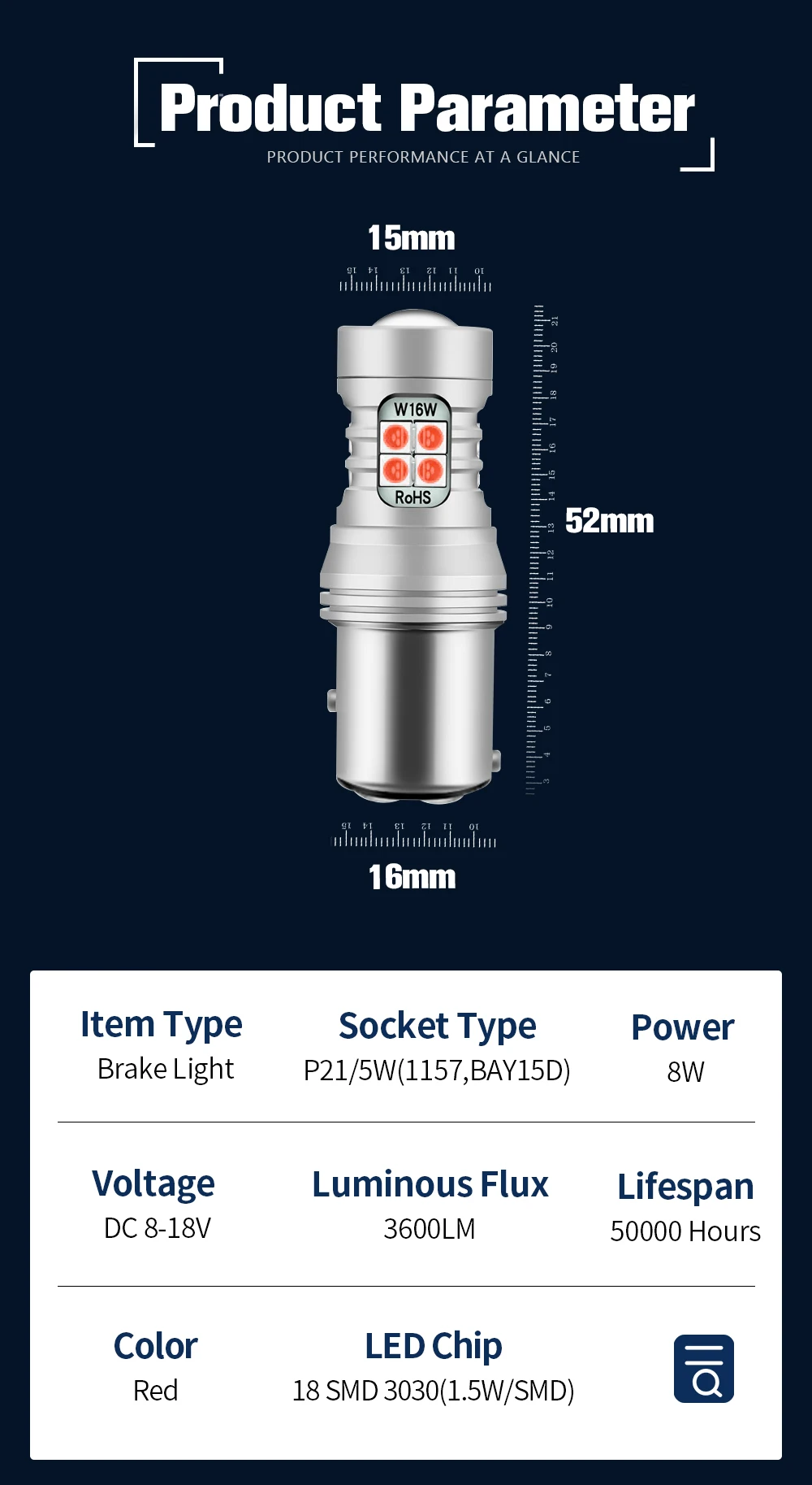 3. Тип разъема: P21/5 Вт (2357,1157,7528,BAY15D)