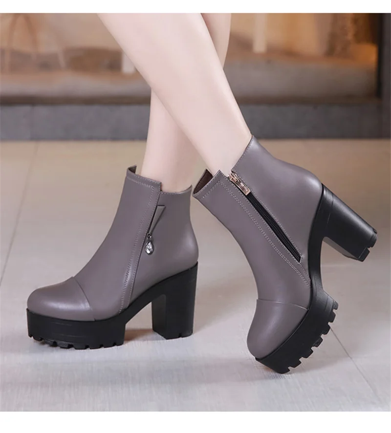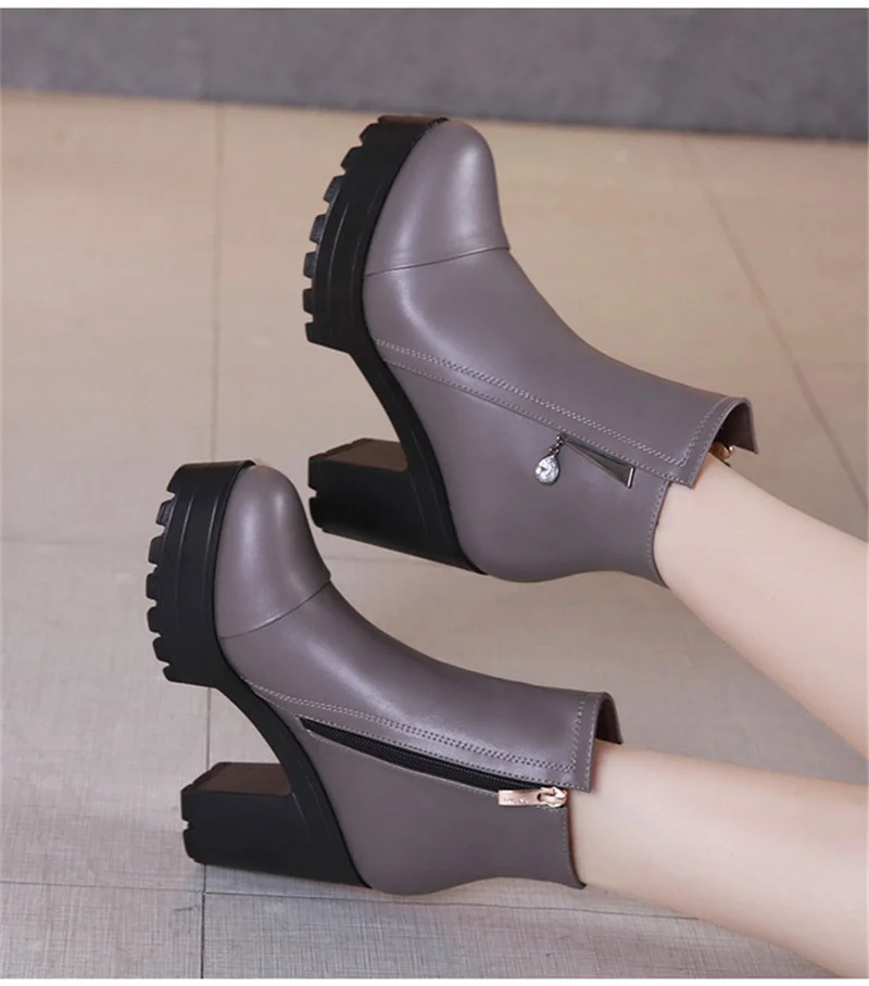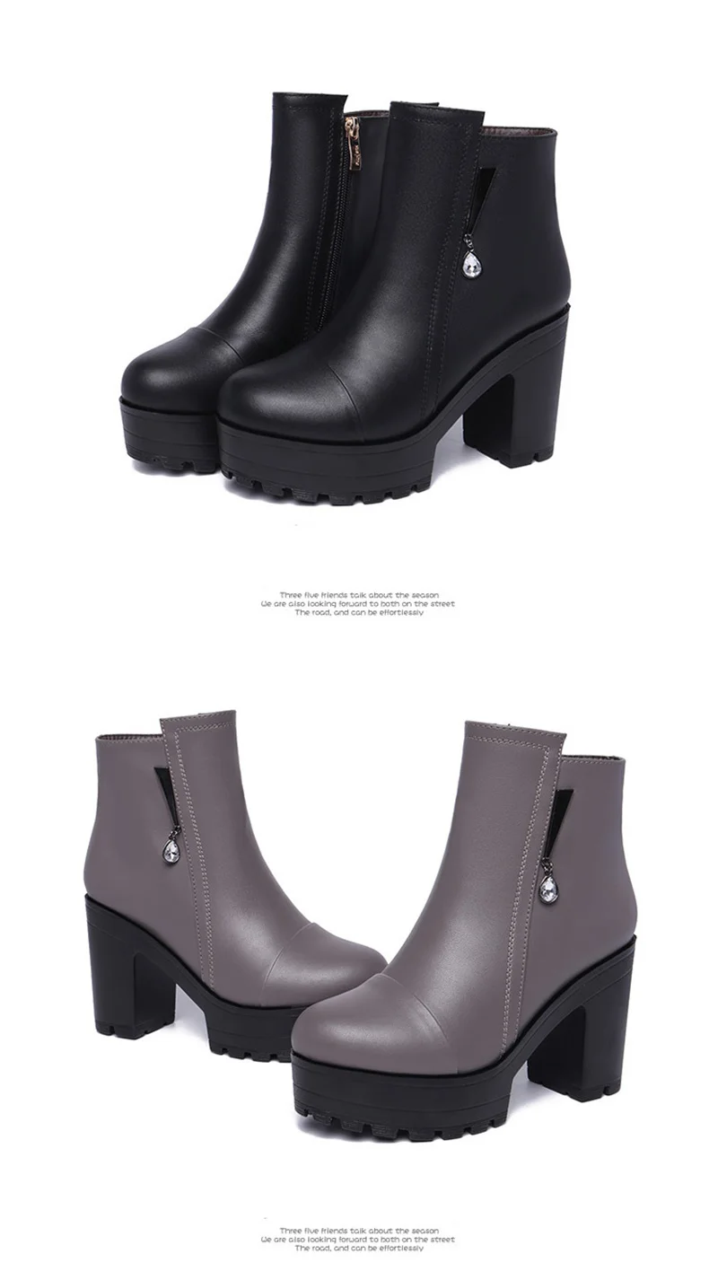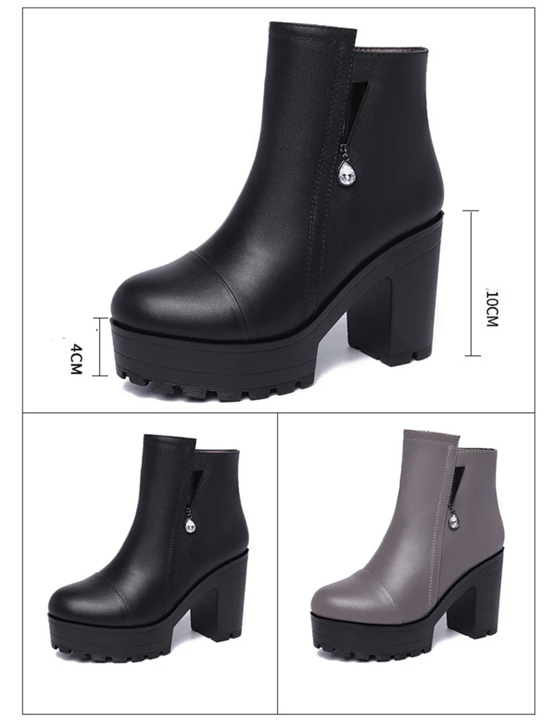 CEYANEAOQuality короткие женские ботильоны на блочном каблуке 2021 зимние ботинки