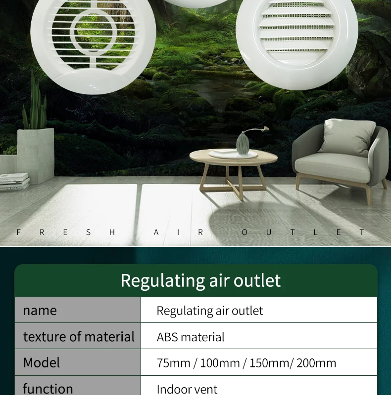 * Стильный, компактный и прочный, это отверстие может использоваться в качестве воздухозаборника или розетки, идеально подходит для ванной комнаты, кухни и офиса вентиляции