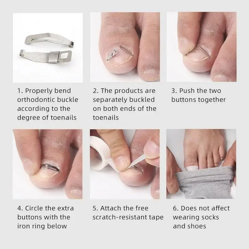 Принцип коррекции: ортопедическая Пряжка для ногтей изготовлена из гибкого и эластичного композитного материала. С помощью микро-дышащей ленты ортопедическая Пряжка для ногтей наклеивается на поверхность ногтя, которая может генерировать повышенную устойчивость и постепенно вытягивать гвоздь, который растет во плоти, измените направление роста, чтобы ногти больше не росли в плоти.