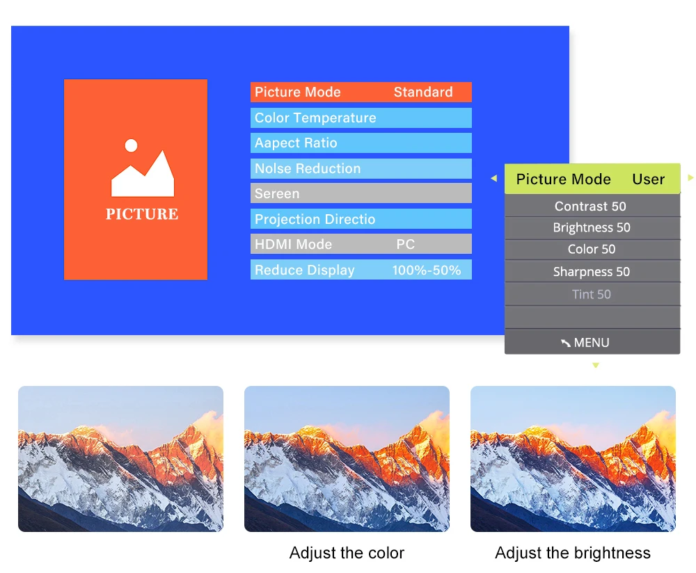 Цвет изображения и яркость могут быть настроены по Вашему образу