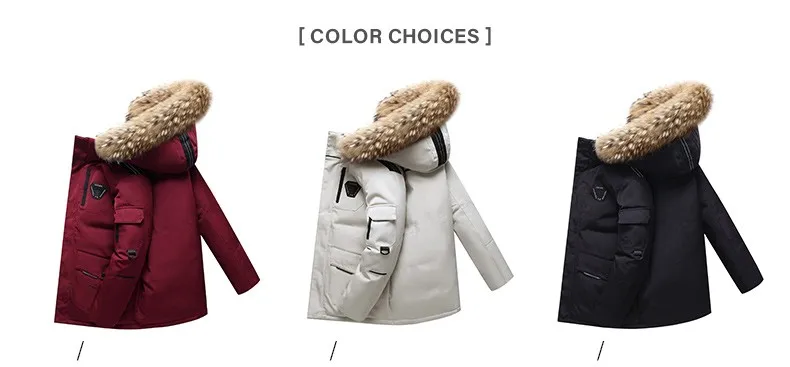 Мужская теплая Толстая куртка, зимняя парка, теплая пуховая куртка, пальто высокого качества, пальто 90% белого утиного пуха, съемная шапка, парка