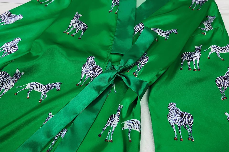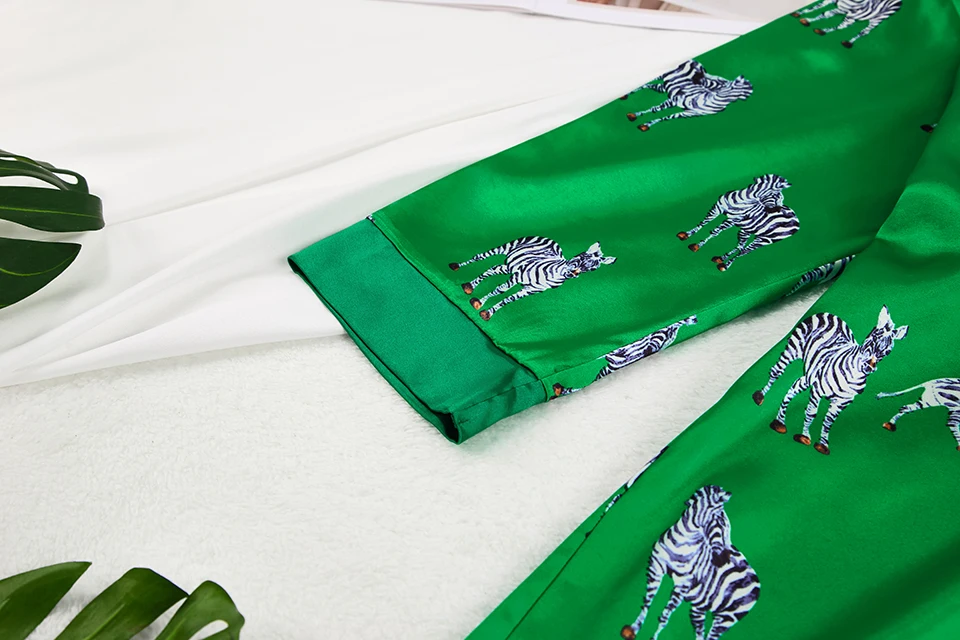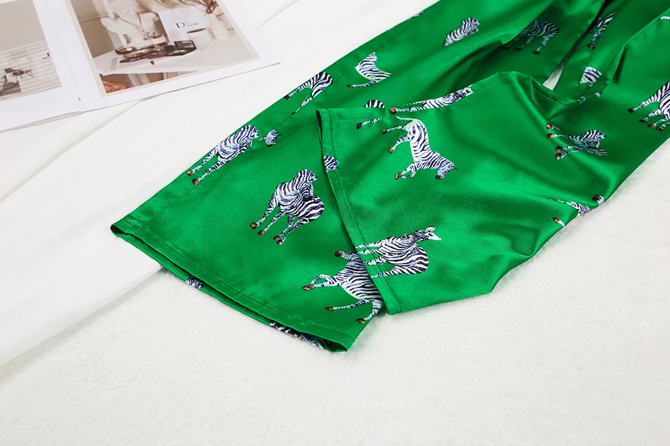 Пижамы женские пижамные комплекты Женская одежда с животным принтом Зебра брючные костюмы атласная женская ночная рубашка с расклешенными рукавами ночная рубашка