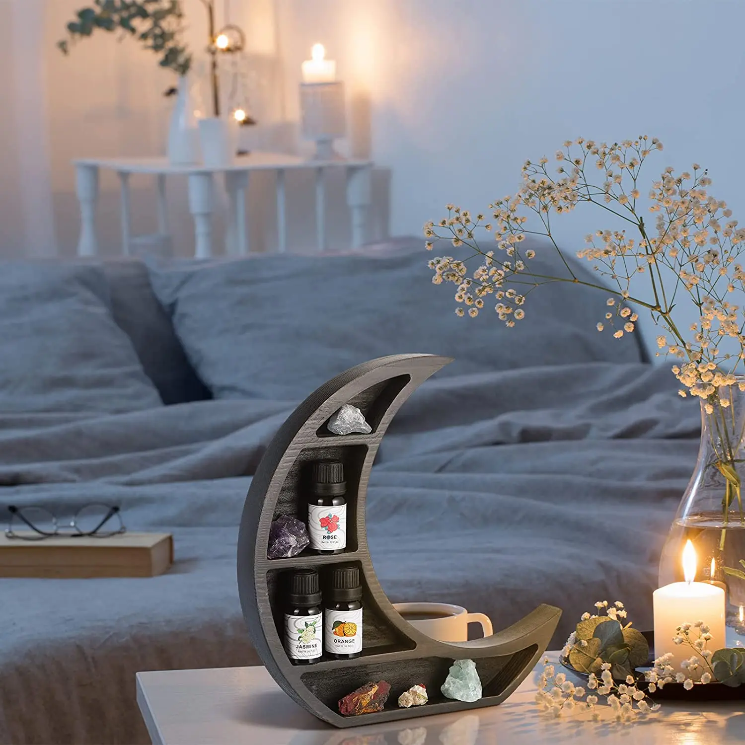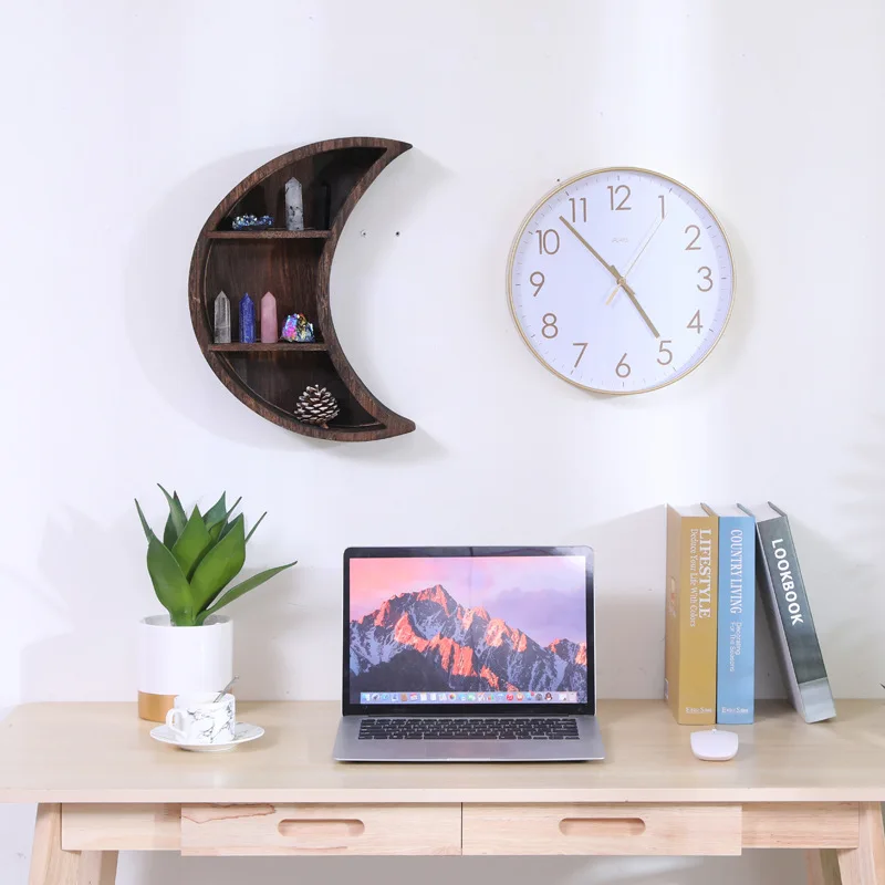 Полочка в форме Луны идеально подходит для хранения мелких предметов, таких как кристаллы, макияж, камни, растения или ювелирные изделия; Поместите ее на книжную полку, журнальный столик, стол, или Повесьте его на стену; Обратите внимание, что в комплект не входит подвесное приспособление