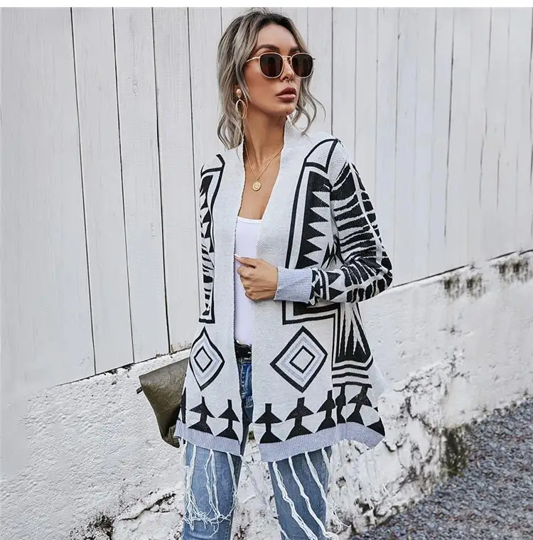 Женский длинный кардиган камуфляжной расцветки Свободный вязаный базовое