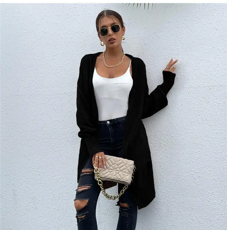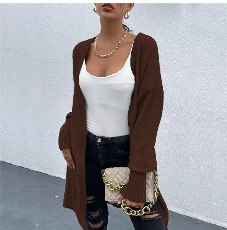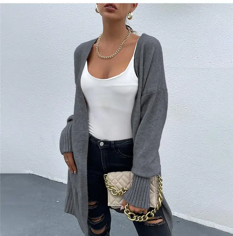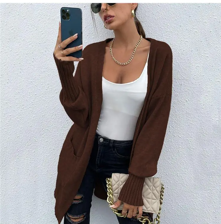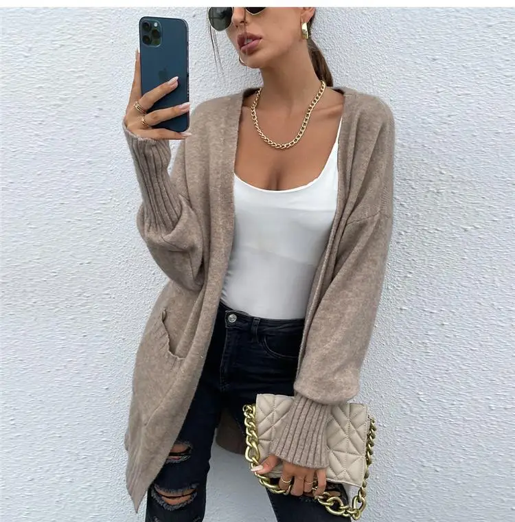 2020 свободный свитер с V-образным вырезом и рукавами-фонариками осенний кардиганы