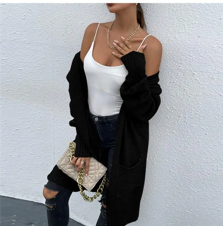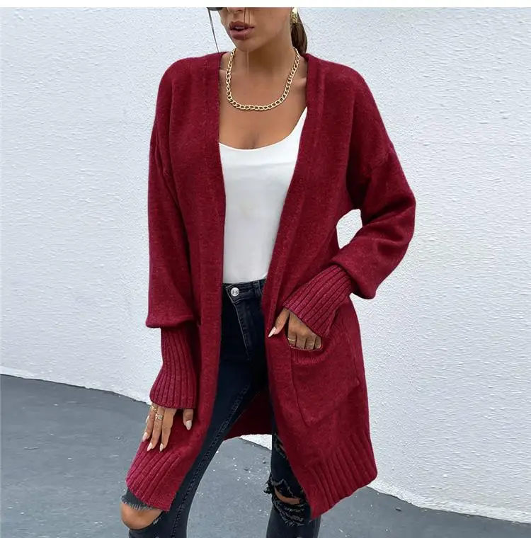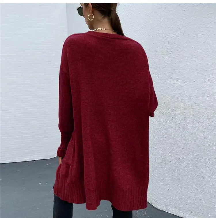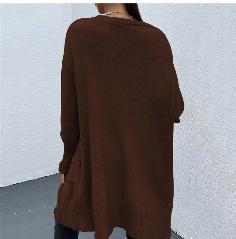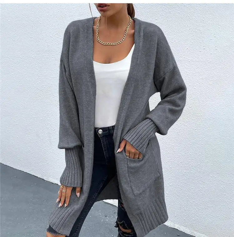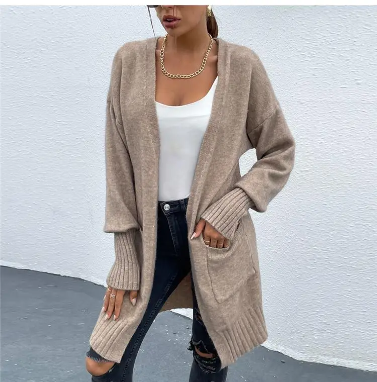 2020 свободный свитер с V-образным вырезом и рукавами-фонариками осенний кардиганы