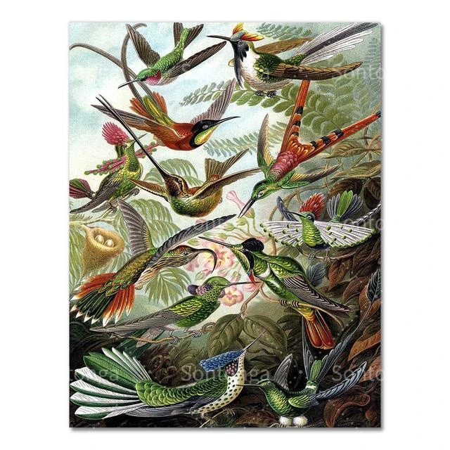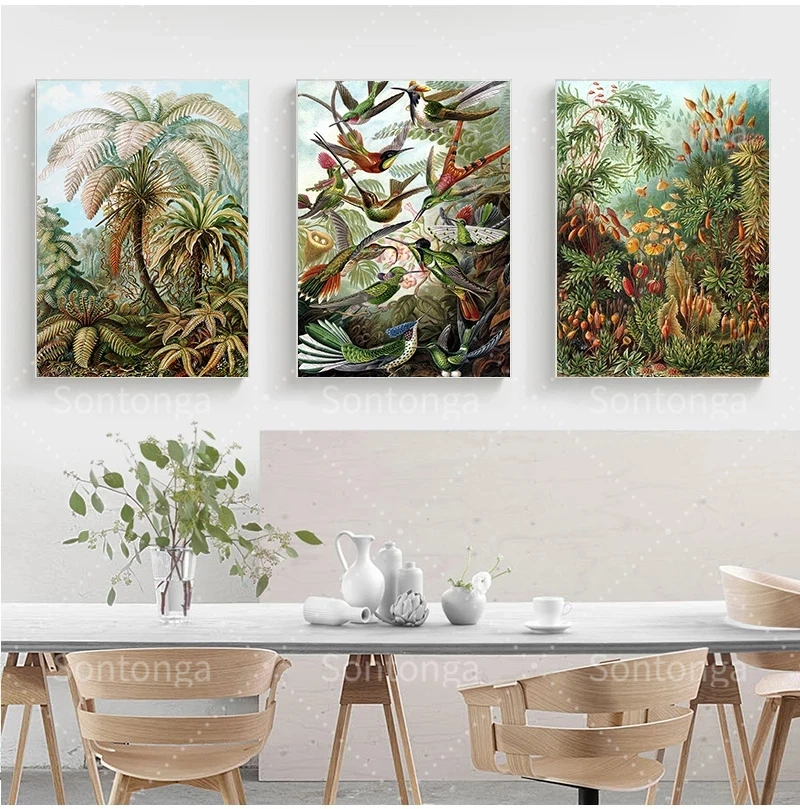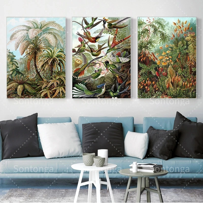 Биология постер пальмовое дерево печать ретро Колибри Тропическое растение Художественный набор холст п...