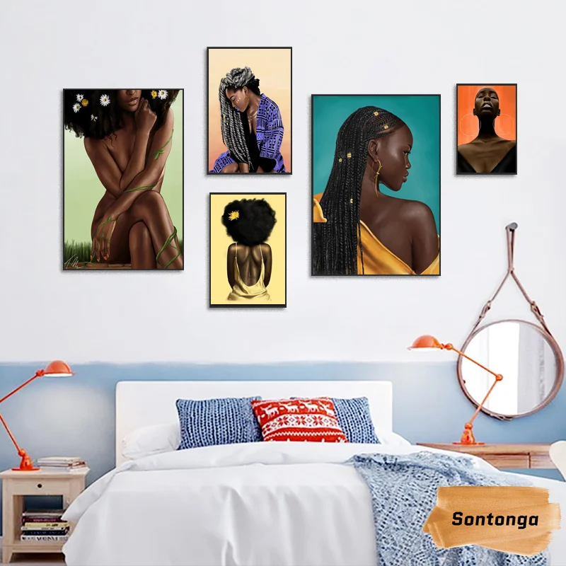 Картина маслом постер Холст Картина африканские Черные Женщины независимое искусство...