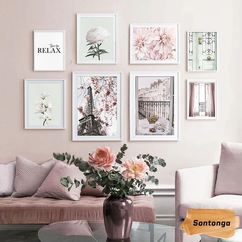 Цветочные скандинавские современные свежие розы ретро крафт-бумага холст картина плакат прозрачный р...