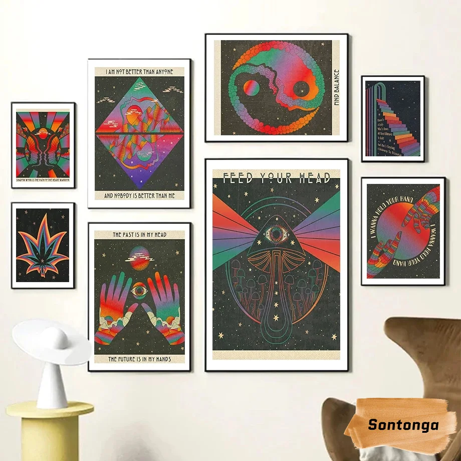 Абстрактный Таро карты глаза Divination гриб Холст Картина по горизонтали Rising Con...