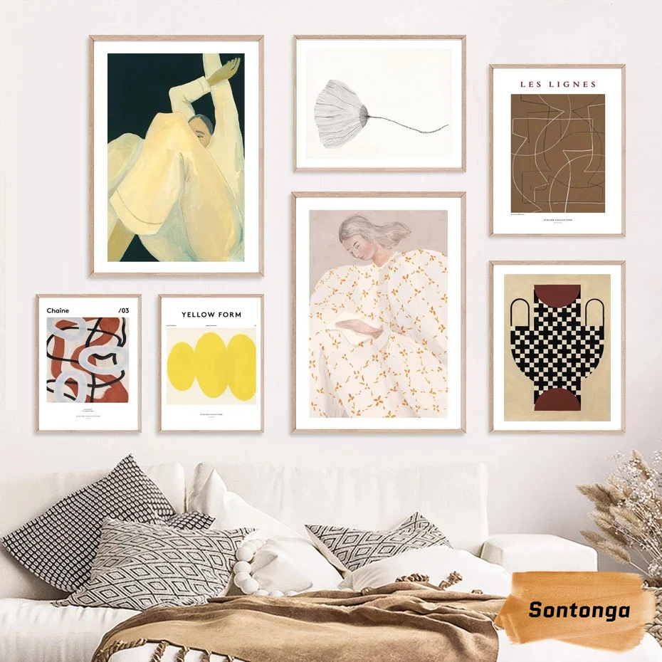 Абстрактная линия лимон девушка современный скандинавский стиль Холст Картина Настенная живопись Poste...