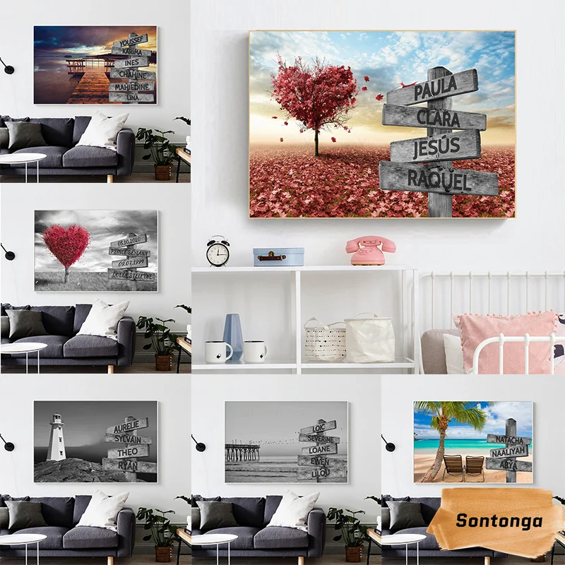 Пейзаж живопись дорожный знак на заказ плакат Холст Картина имя праздник подарок...