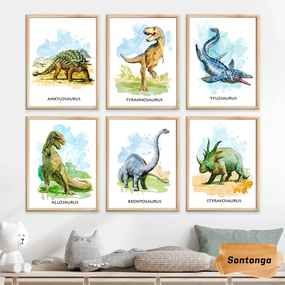 Животное Динозавр Холст Картина Плакат Детская комната украшение питомник Юрского периода ни...