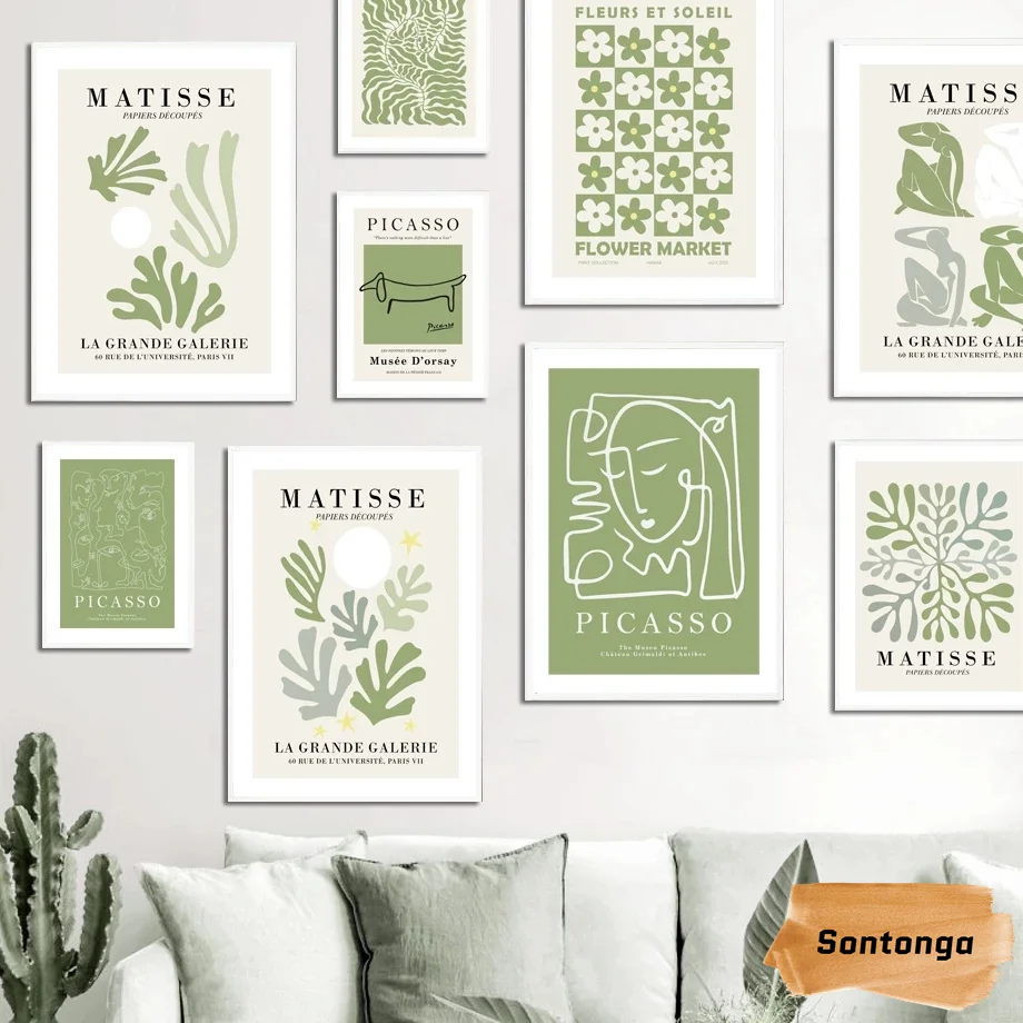 Зеленый Цветочный абстрактный портретный плакат Пикассо Современный домашний декор холст живопись...