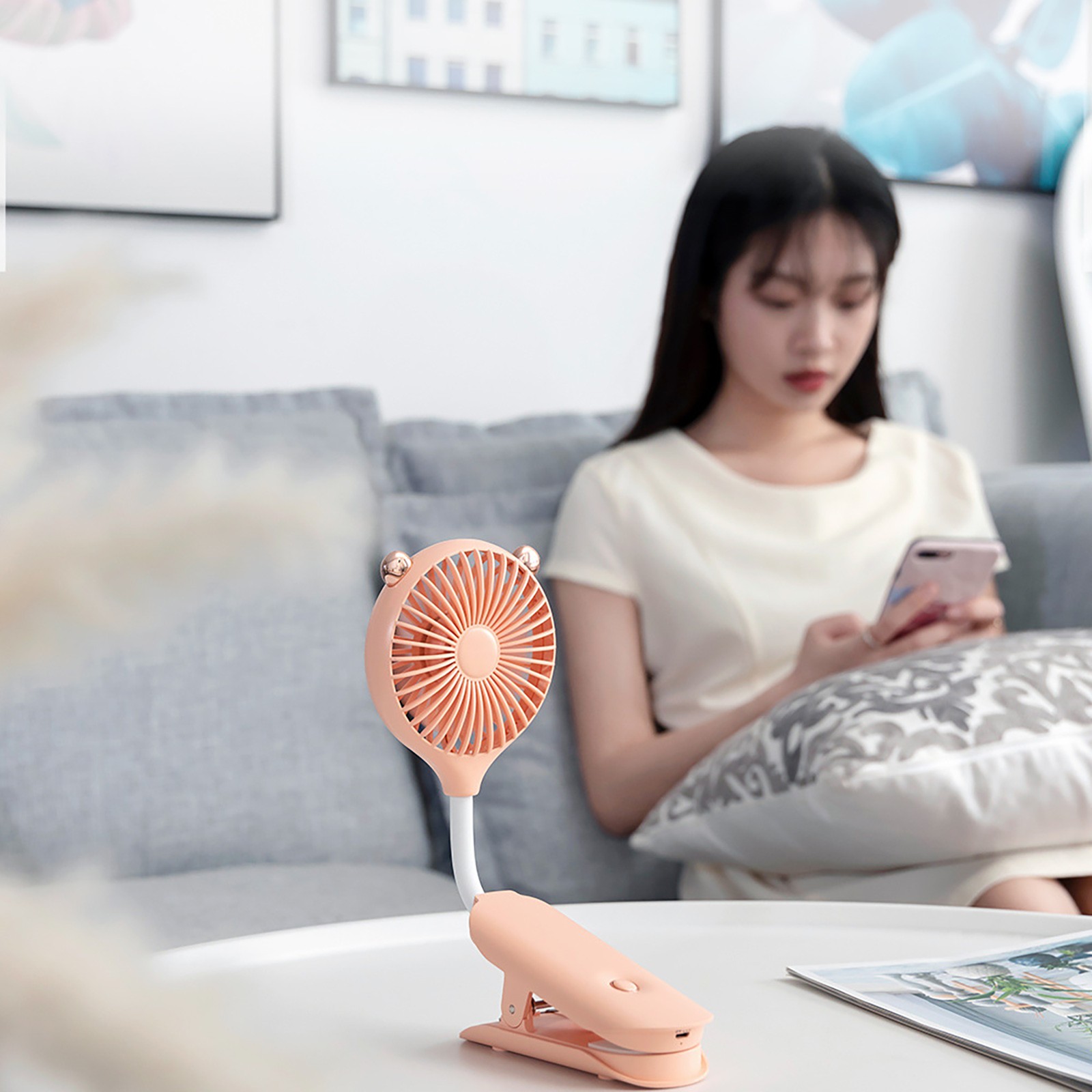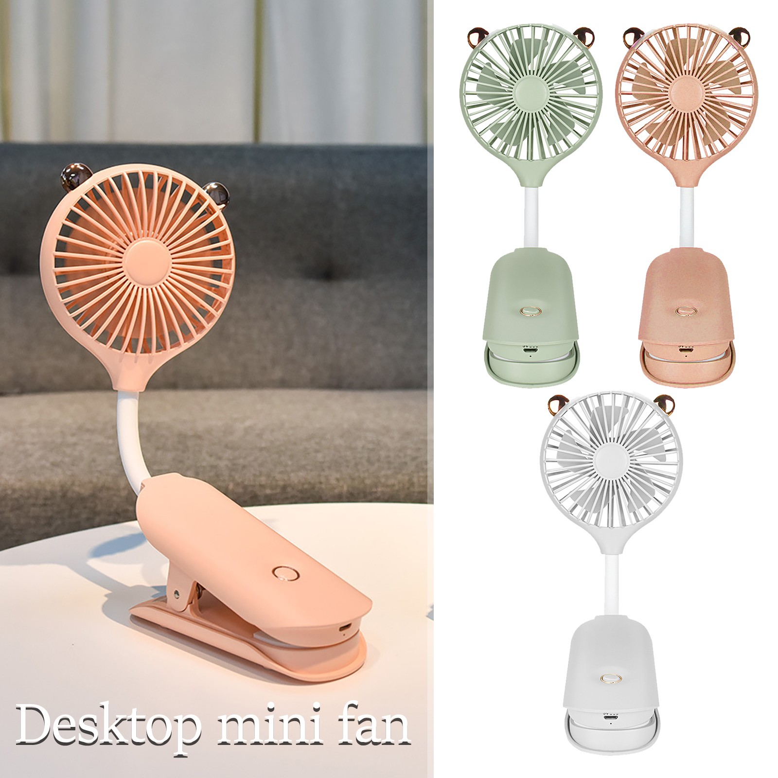 Тихий подвесной мини-вентилятор с клипсой зарядка через USB портативный уличный