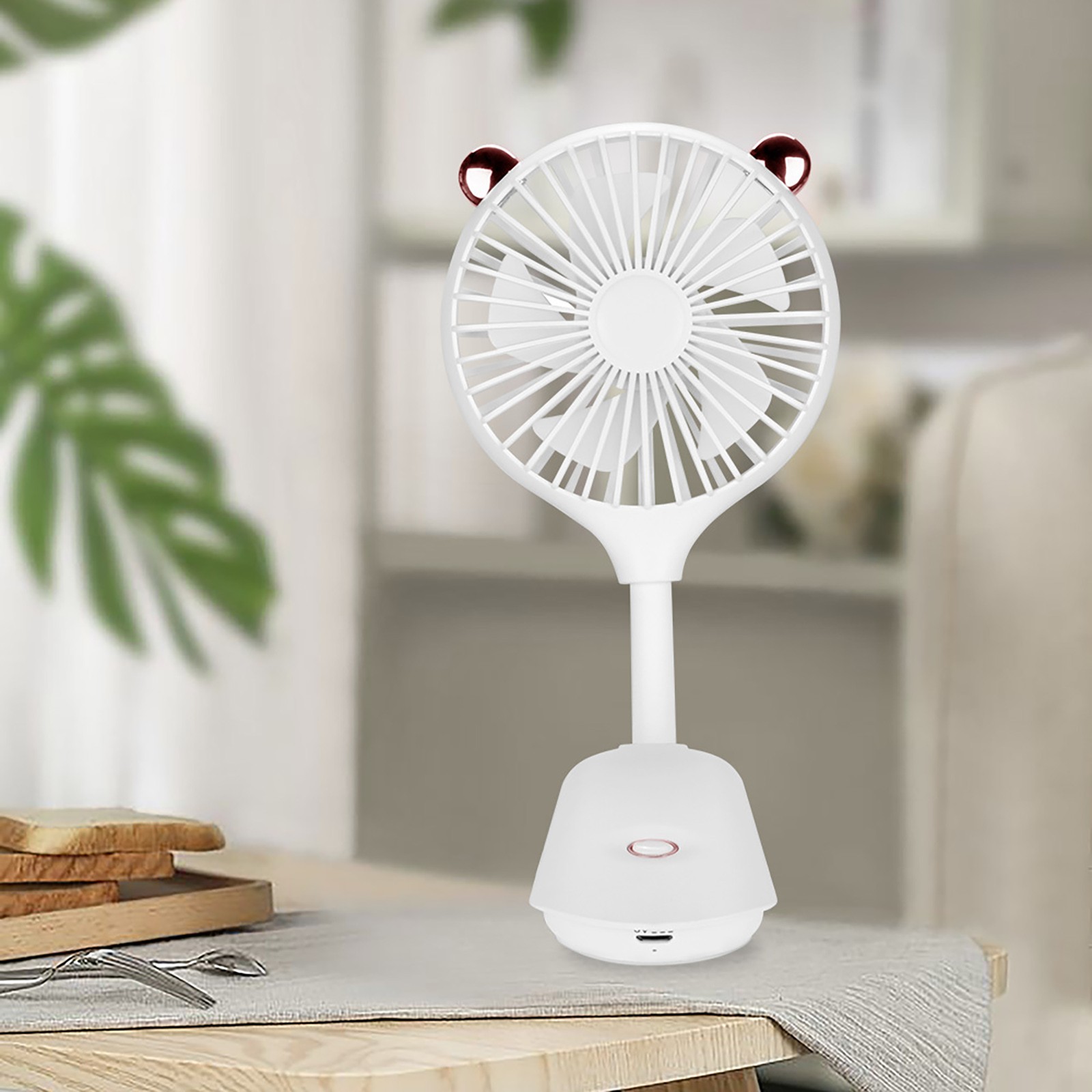 - Работа во время зарядки: питание от usb-устройств, таких как банки питания, компьютеры, ноутбуки и зарядные устройства USB. Портативный вентилятор может работать непрерывно после подключения к источнику питания. Положите его в основание (поставляется в комплекте), и вы можете использовать настольный вентилятор в обычном режиме.