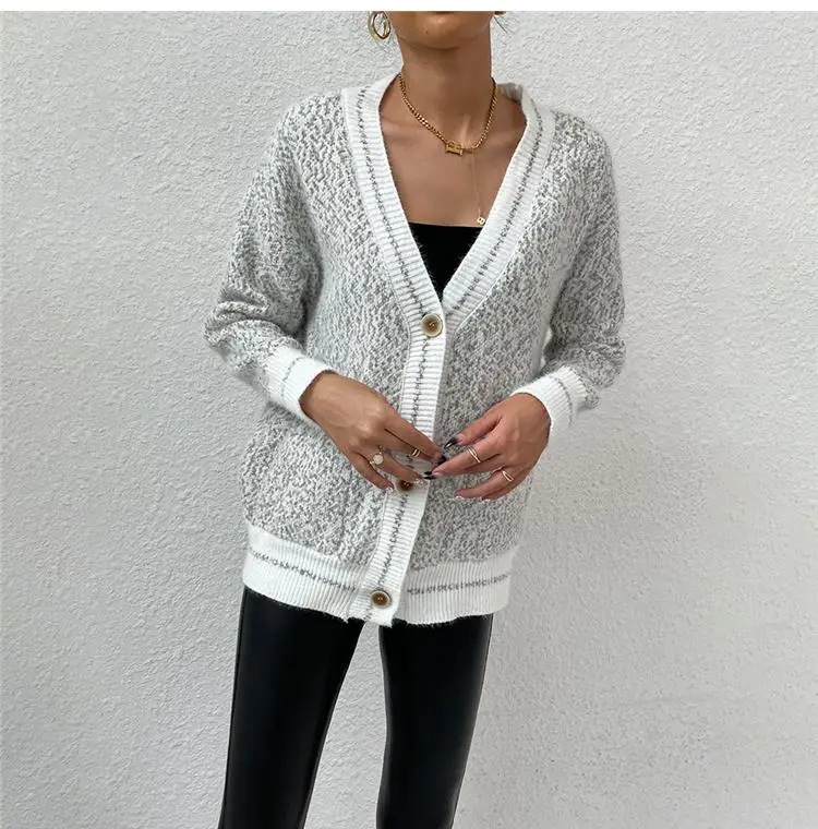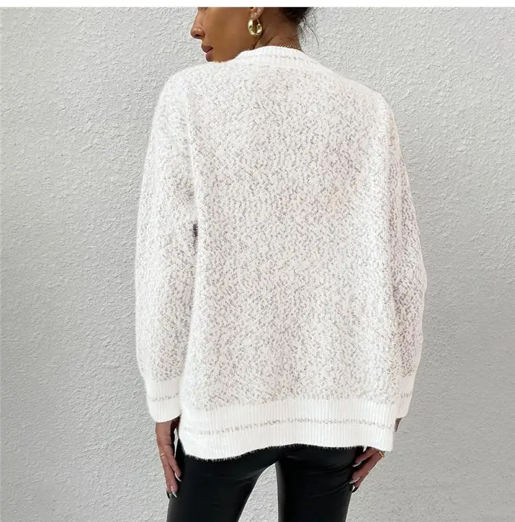 Женский винтажный кашемировый свитер с градиентом черно-синий толстый высоким
