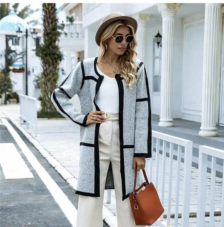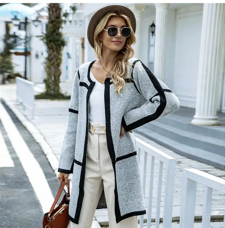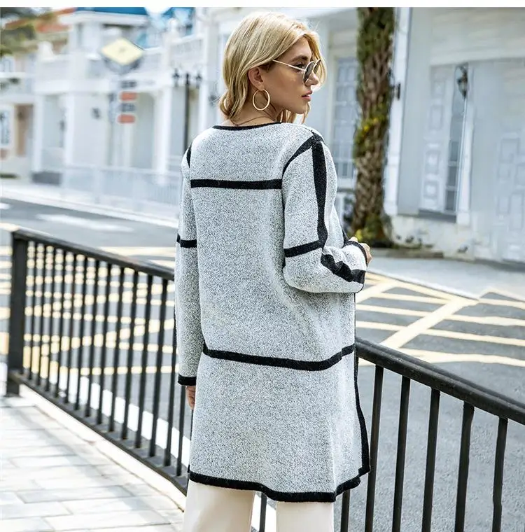 Женский вязаный кардиган свободный свитер с V-образным вырезом