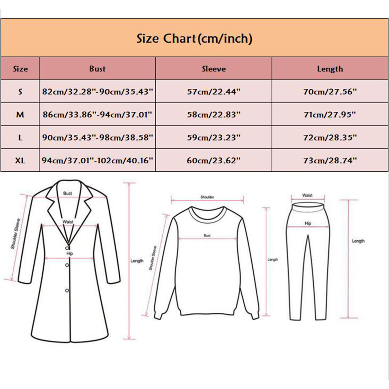 | Размер: S | Бюст: 82 см/32,28 ''-90 см/35,43'' | Рукав: 57 см/22,44 дюйма | Длина: 70 см/27,56'' |