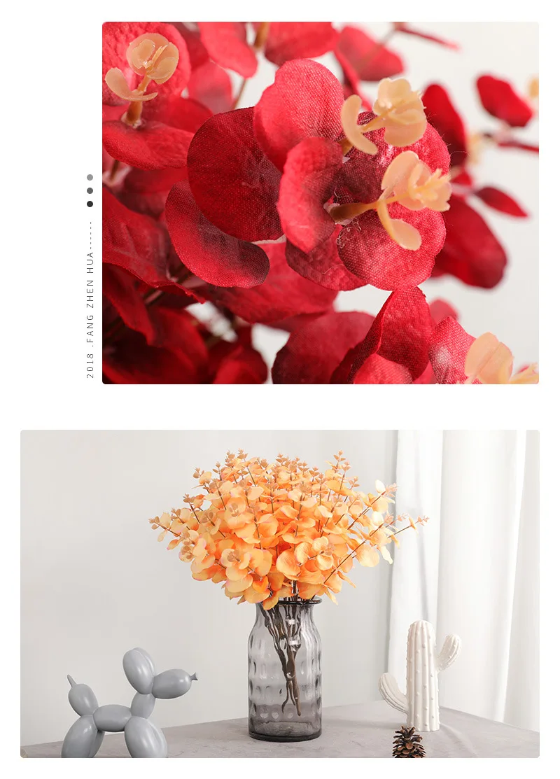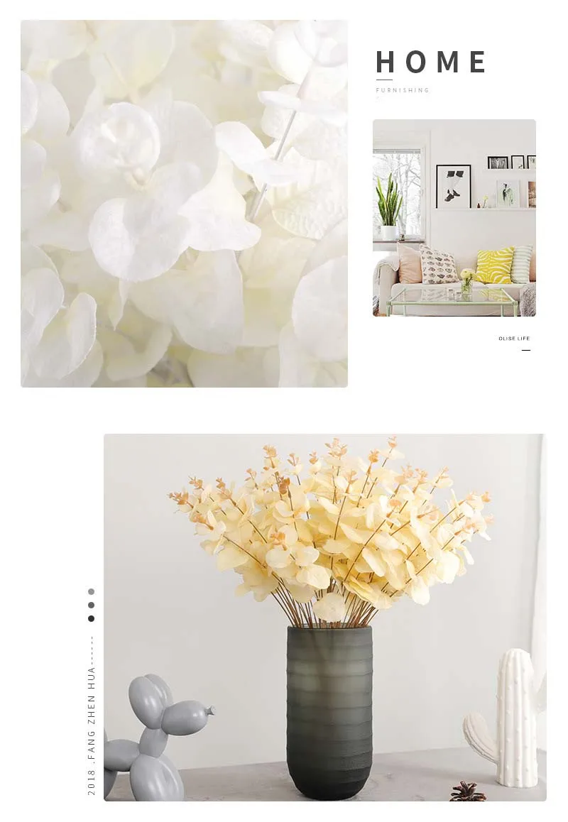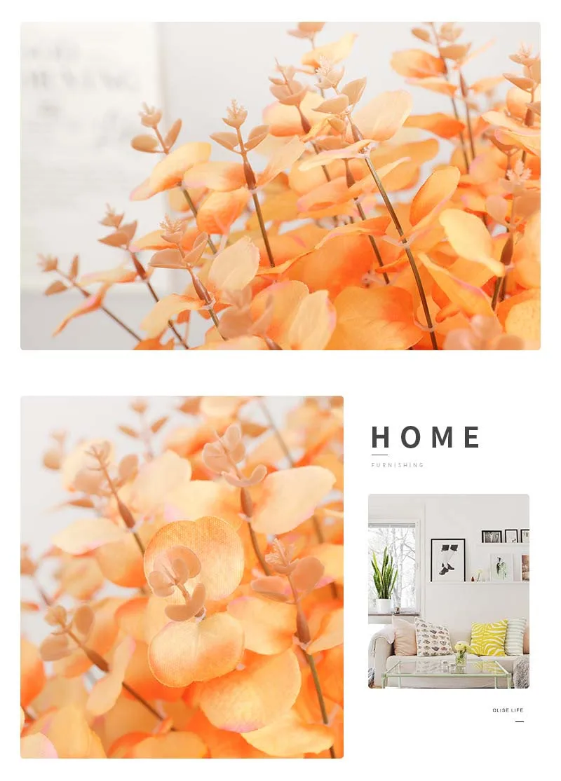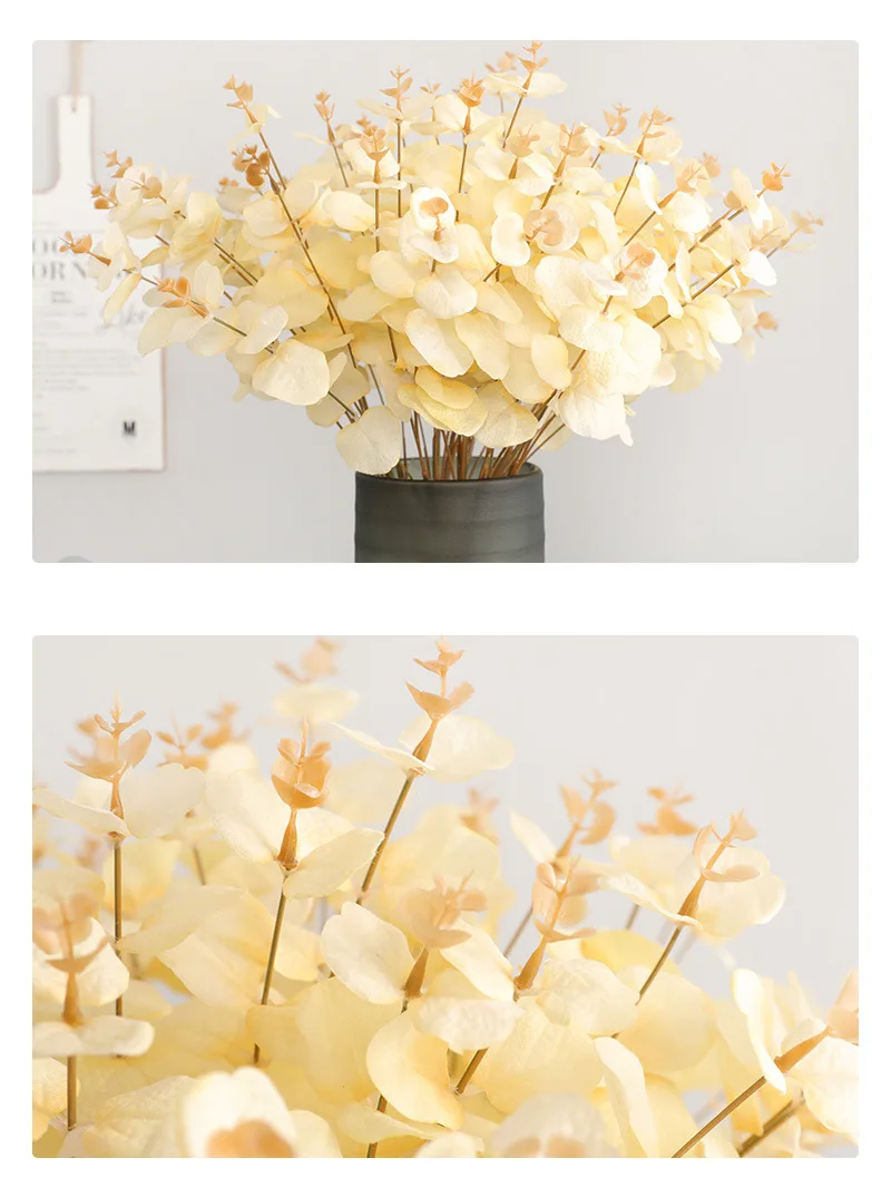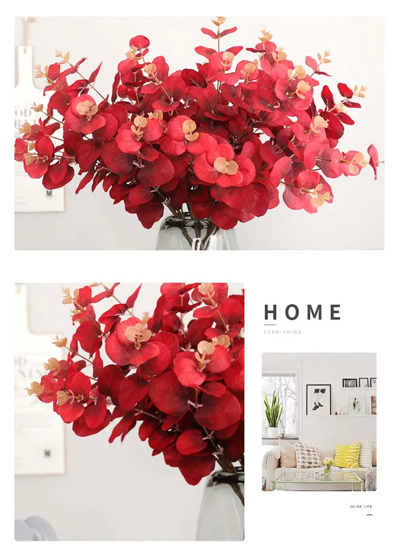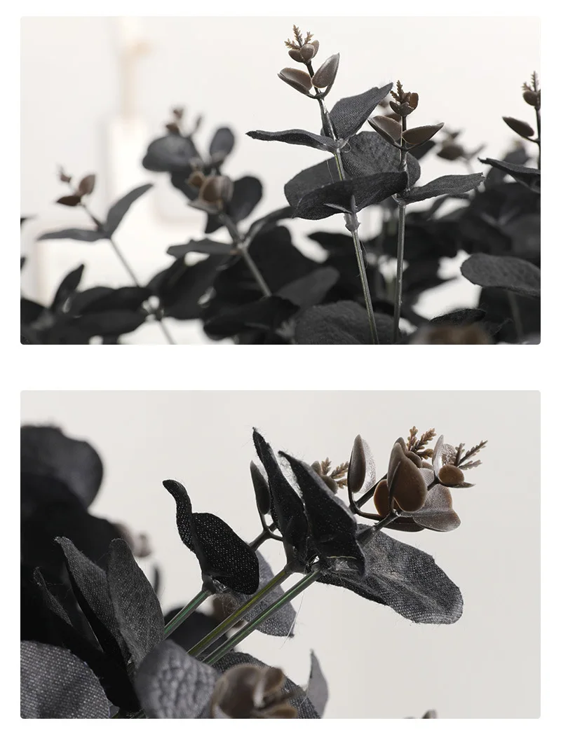 5 вилок, 20 головок, Черные искусственные листья эвкалипта, зеленые растения, Шелковый букет цветов, Свадебные вечерние украшения для дома