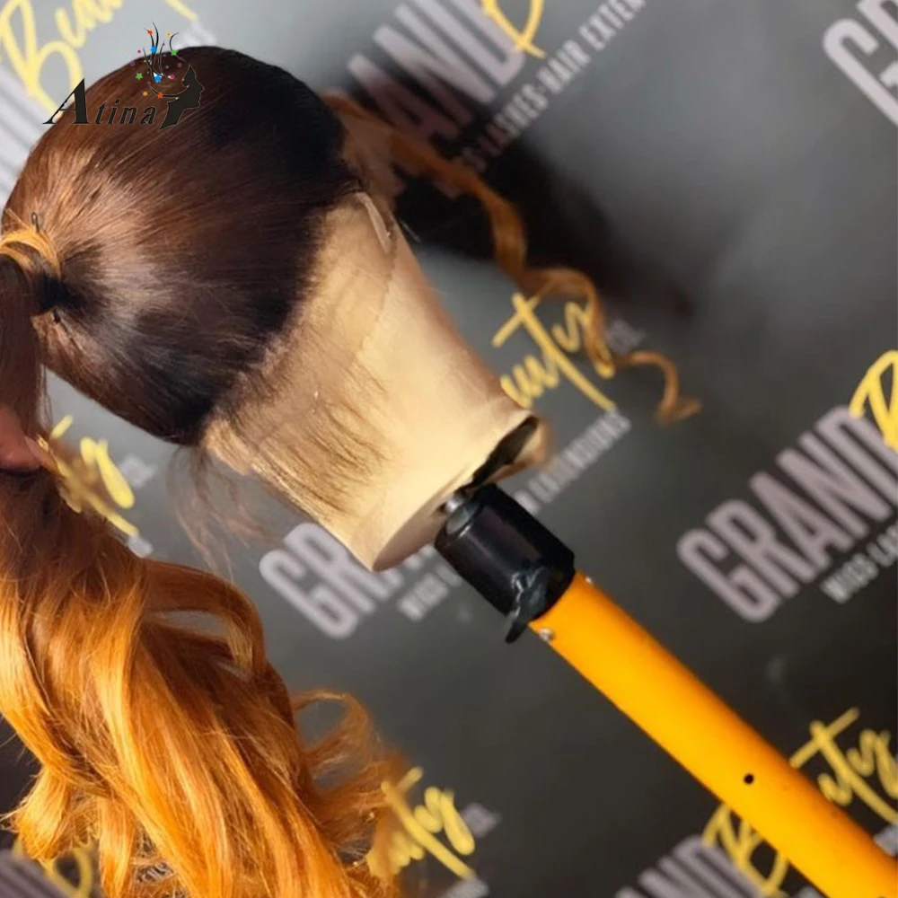 Pre Plucked Ombre Highlight Honey Blonde Colored Body Wave Full 360 Lace Frontal Wig Human Hair Brazilian HD Front Wigs Natural Hairline