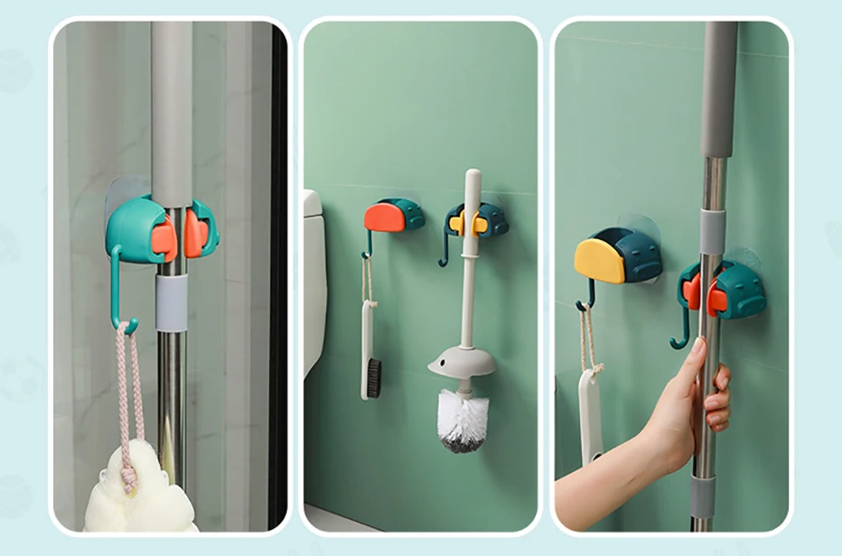 Милый держатель для швабры без дырочек, клейкая настенная декоративная метла, подвесная стойка с крючком, вешалка для хранения ванной комнаты