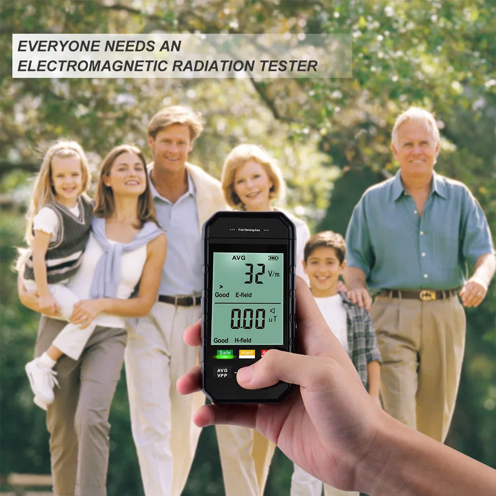 Функция оценки радиации, которая может указывать, если значение радиации тока находится на уровне безопасности, трехцветный светильник, указывающий текущее магнитное поле: безопасность, оповещение, предотвращение, И если данные о электрическом поле в безопасном состоянии, экран станет красным, чтобы предупредить вас.