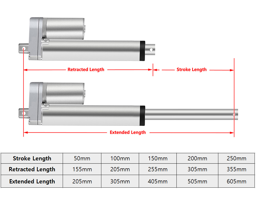 (То есть, длина самого толкателя): L (размеры крепления) = 105 мм + S (ход)