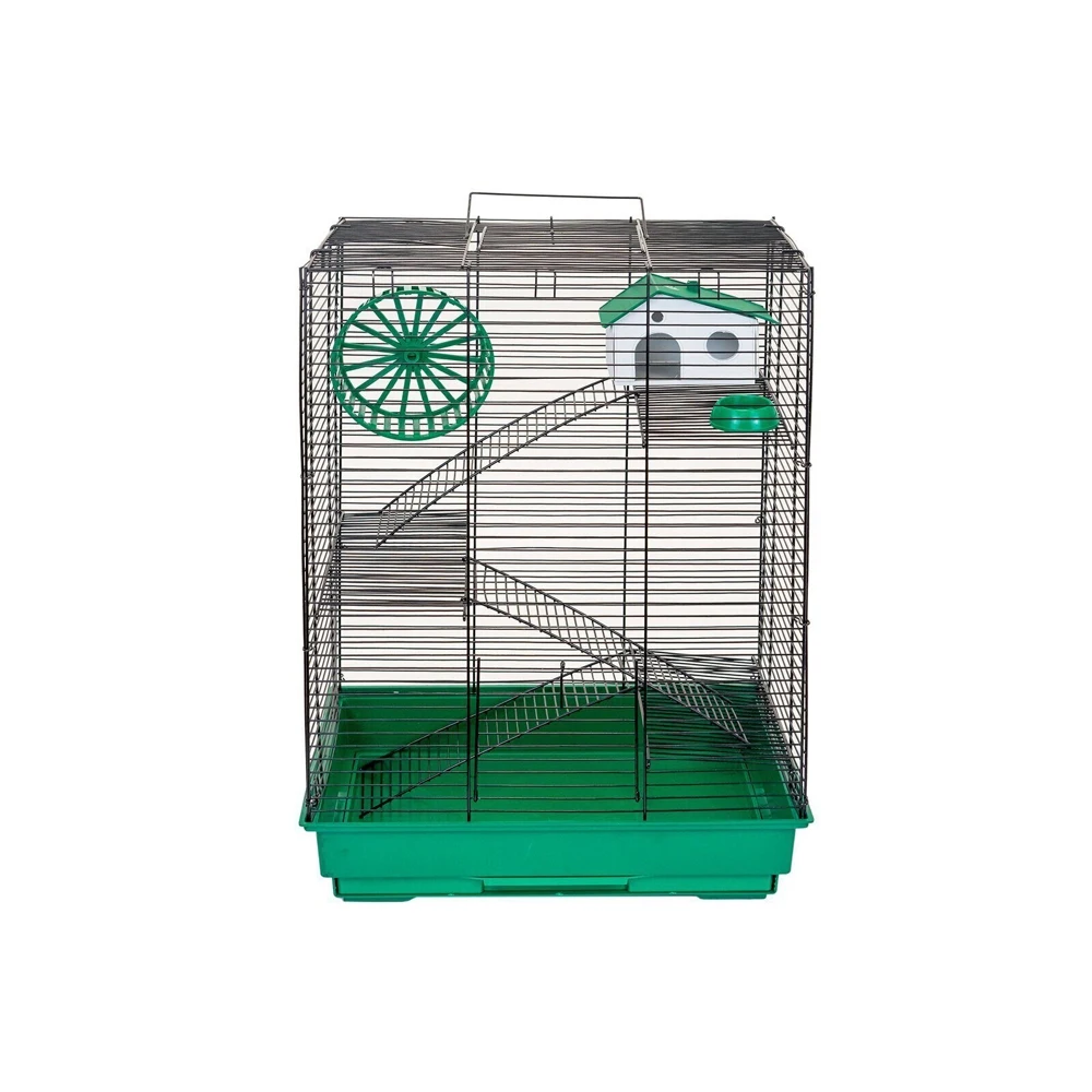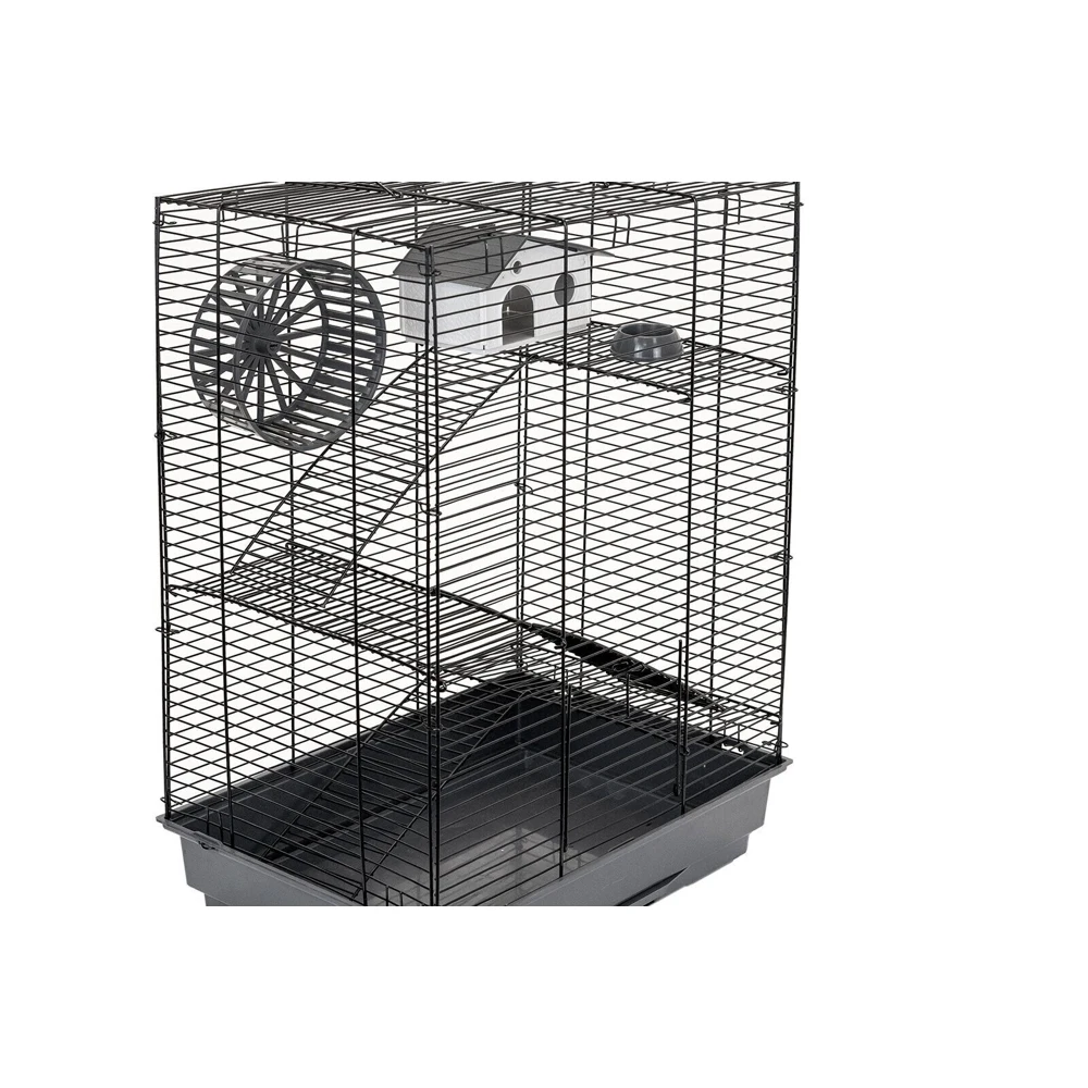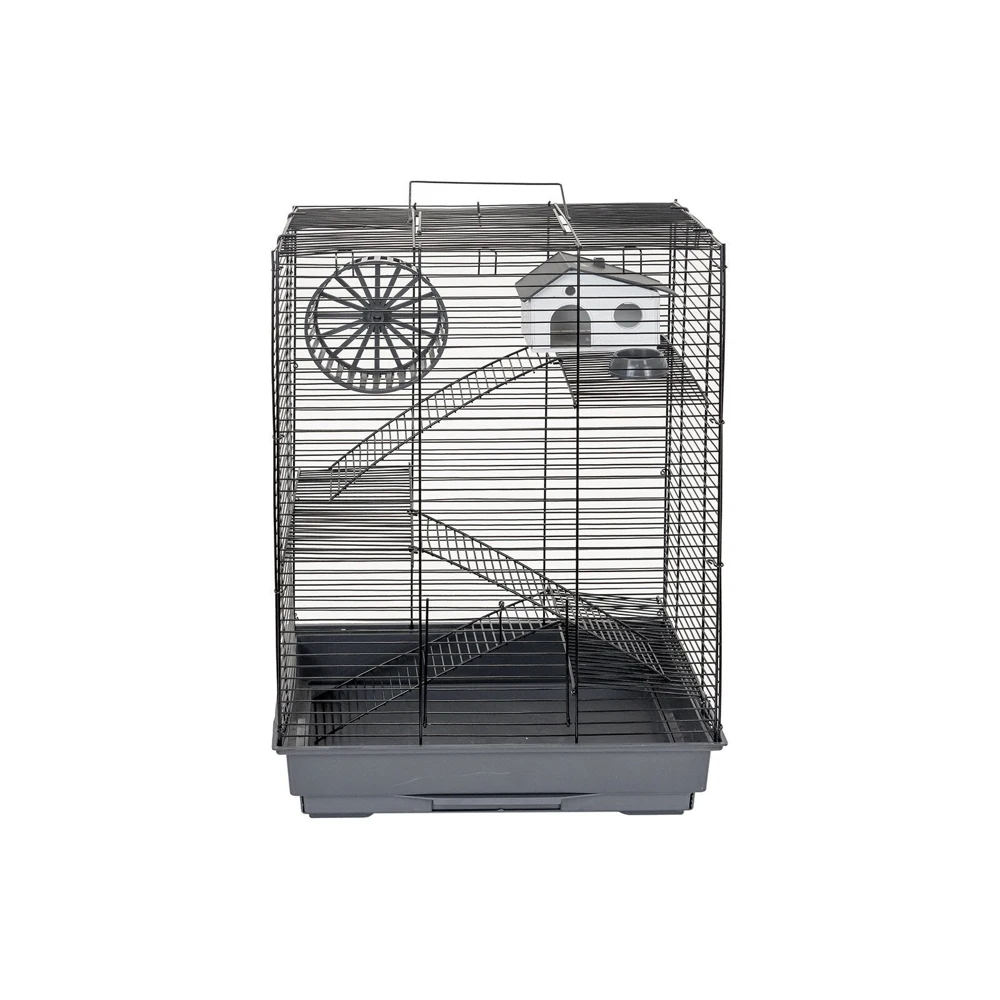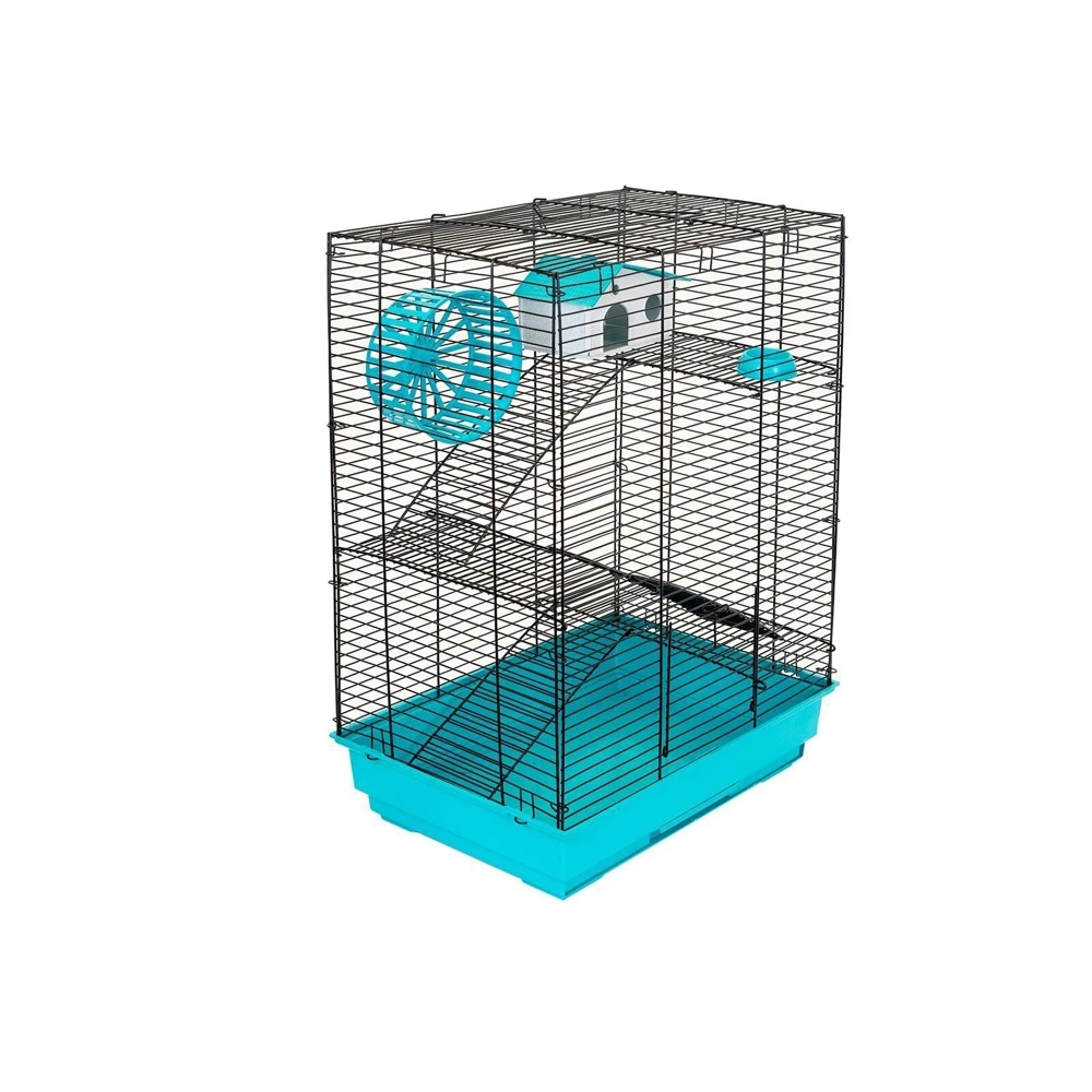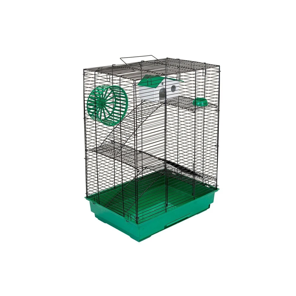 В комплекте: 3 металлических этажа, домик, коолесо диаметром 140мм. С бесщелевой (травмобезопасной) беговой дорожкой, миска диаметром 60мм.