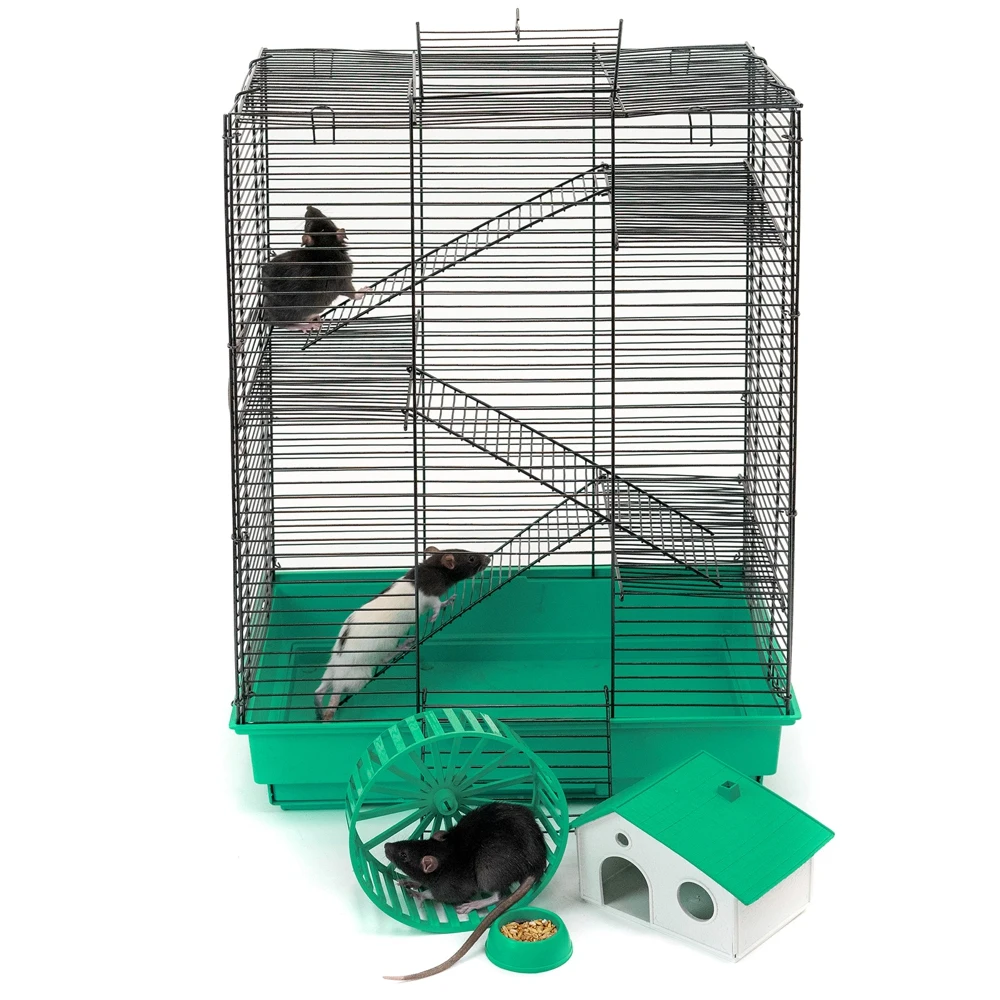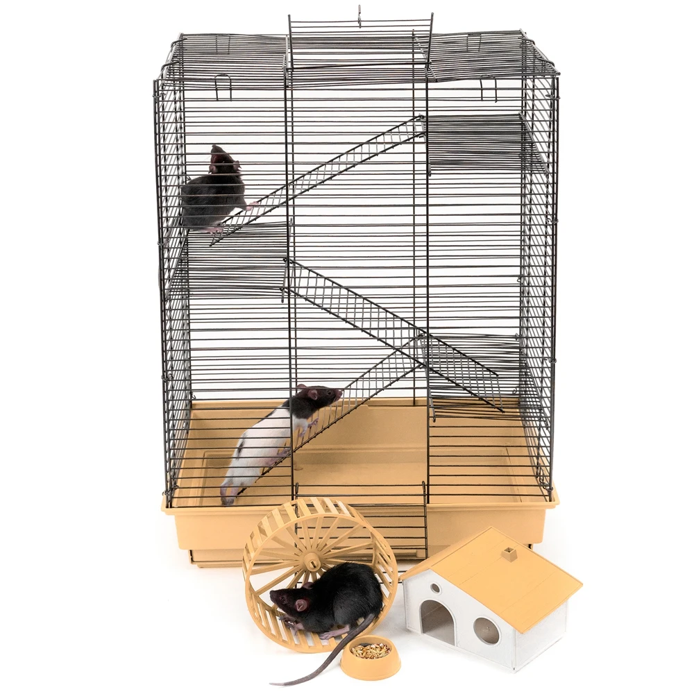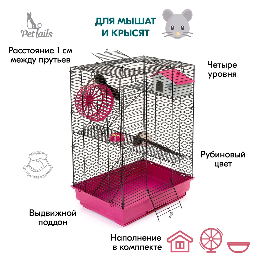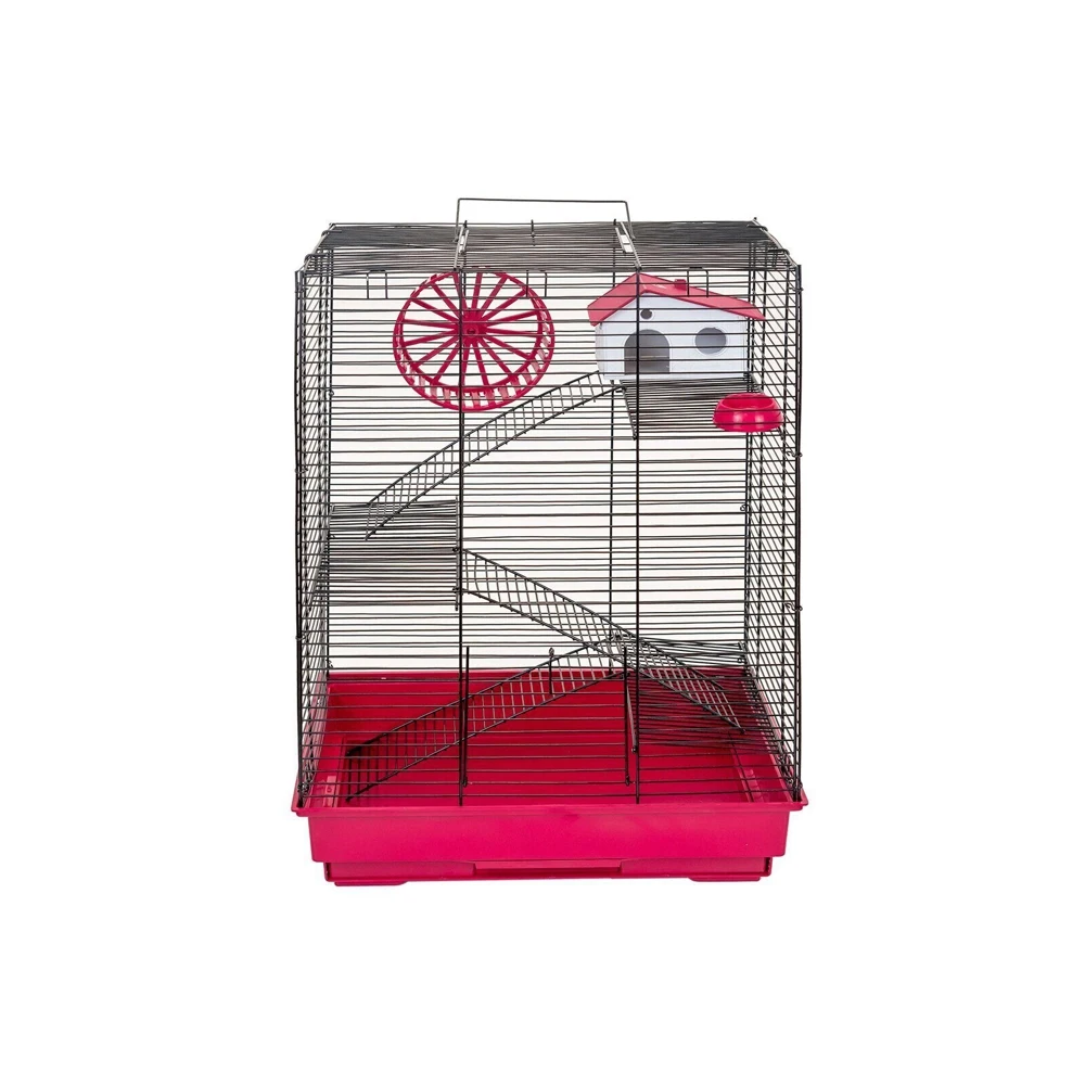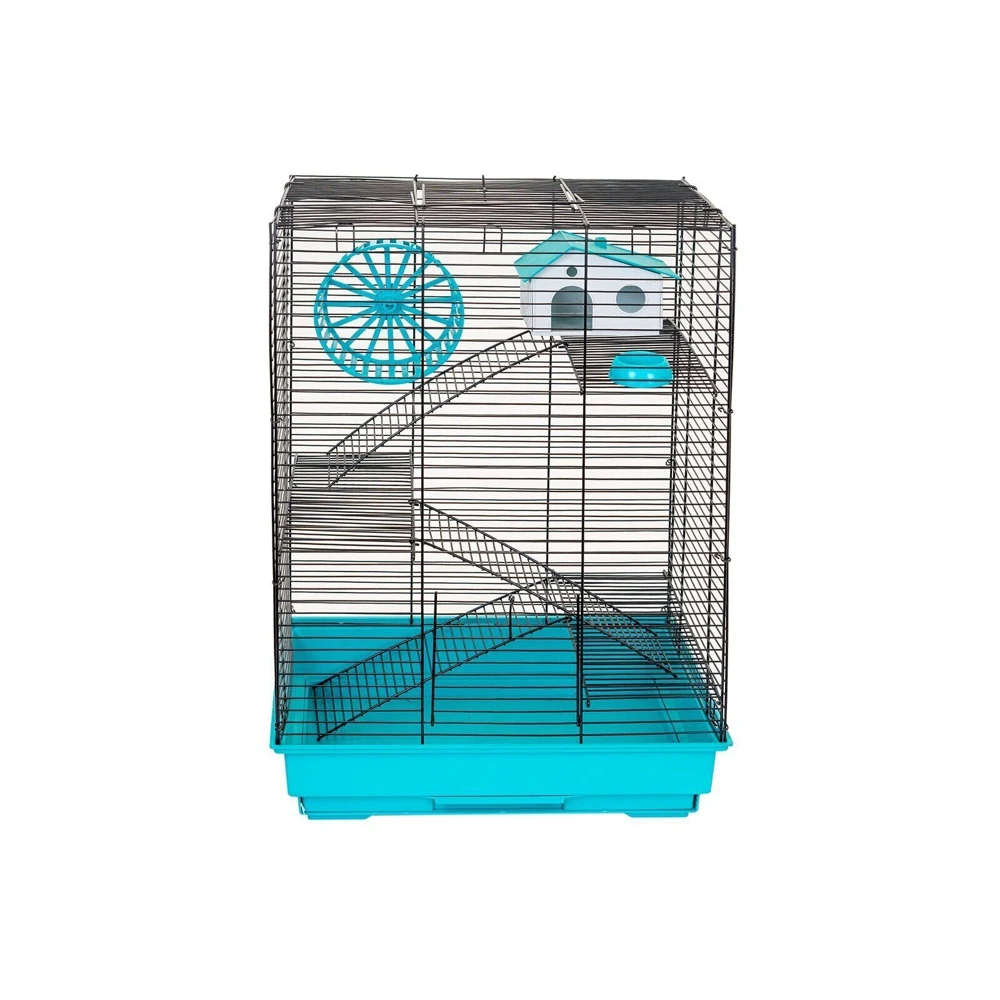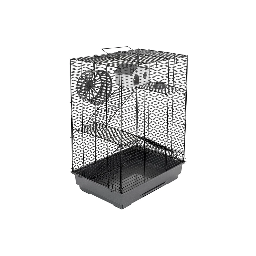 В комплекте: 3 металлических этажа, домик, коолесо диаметром 140мм. С бесщелевой (травмобезопасной) беговой дорожкой, миска диаметром 60мм.