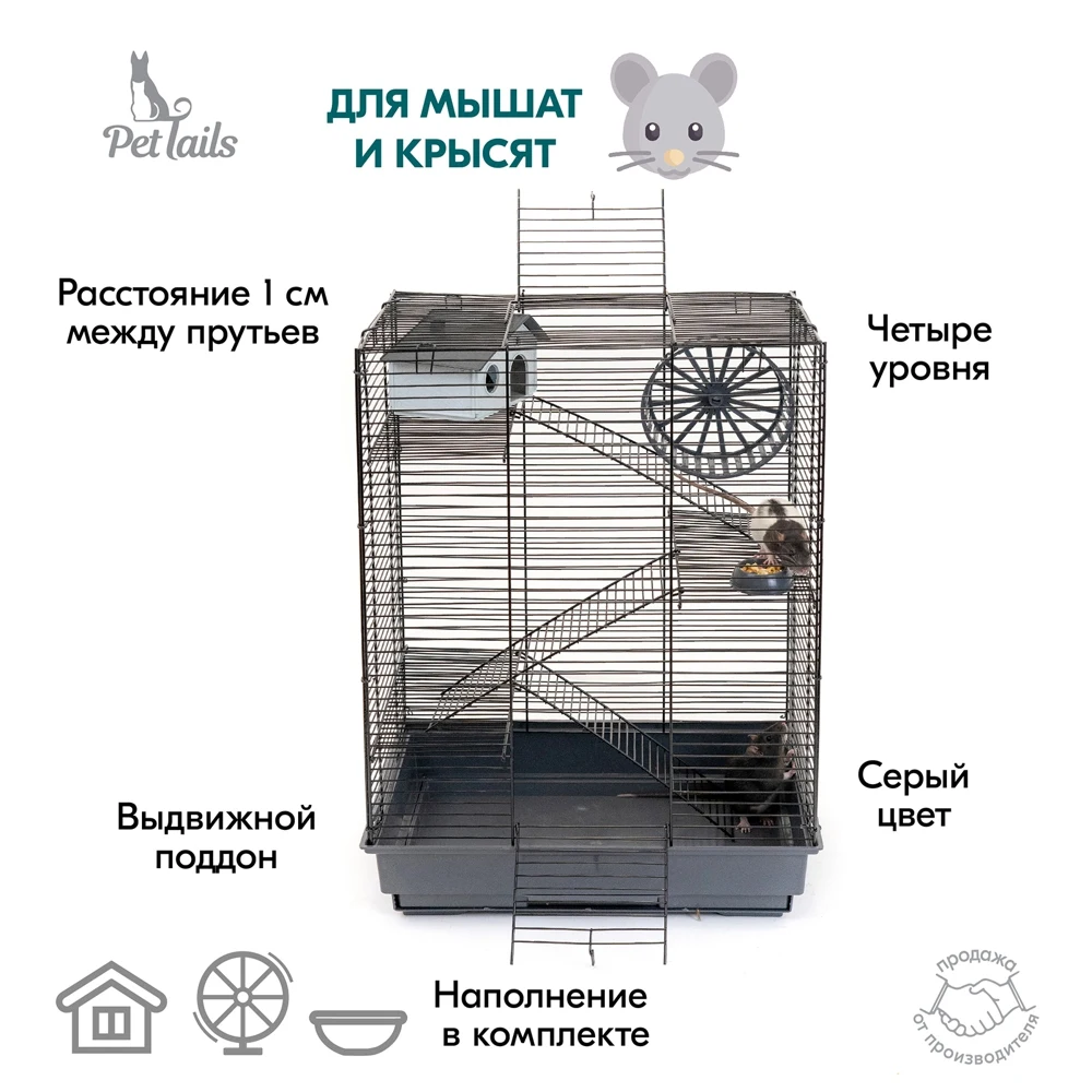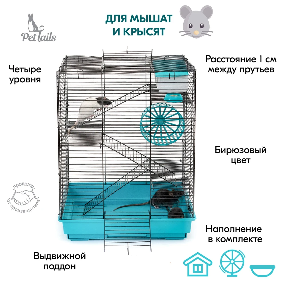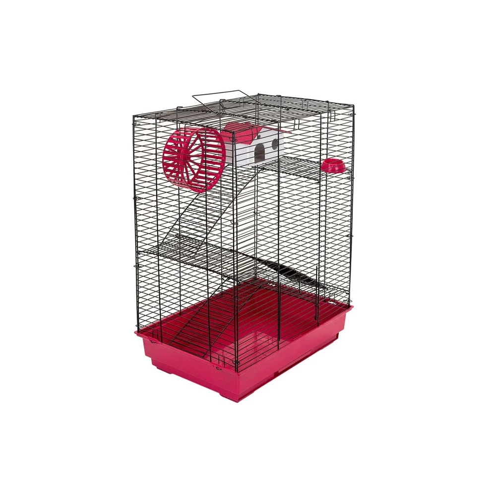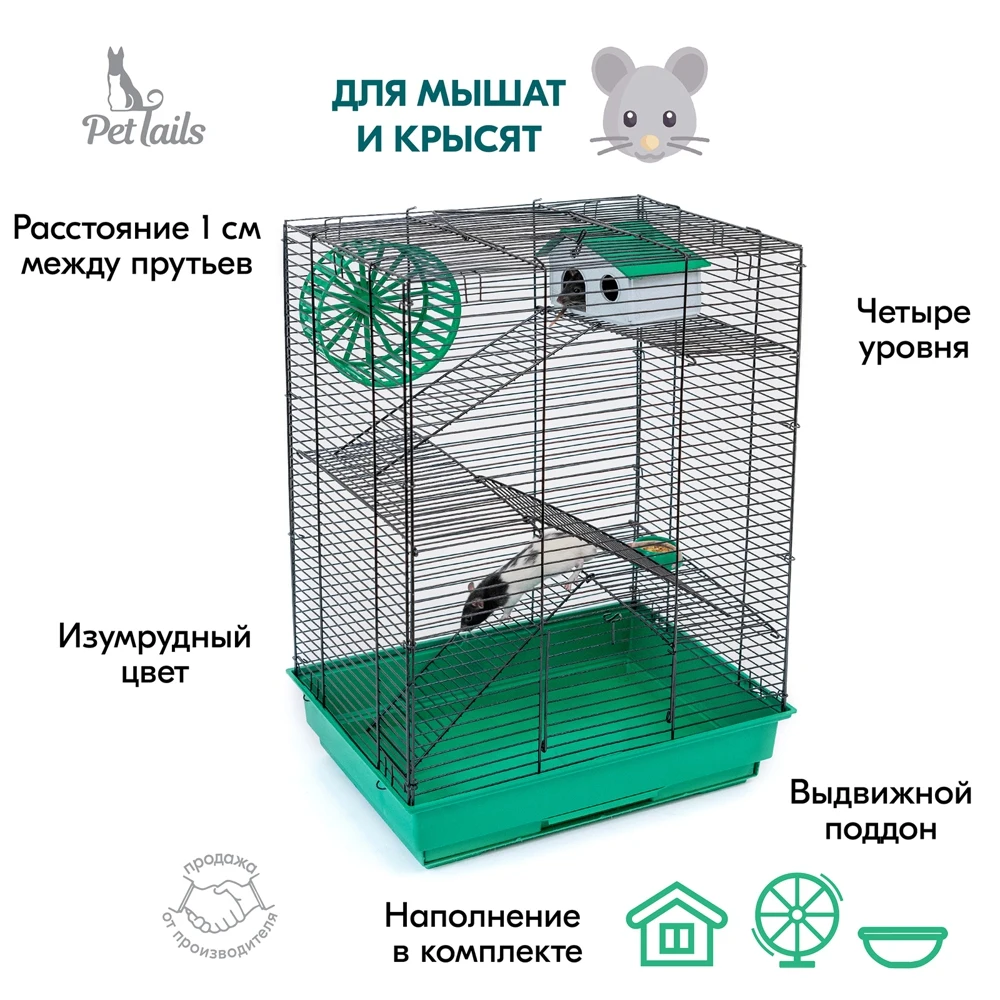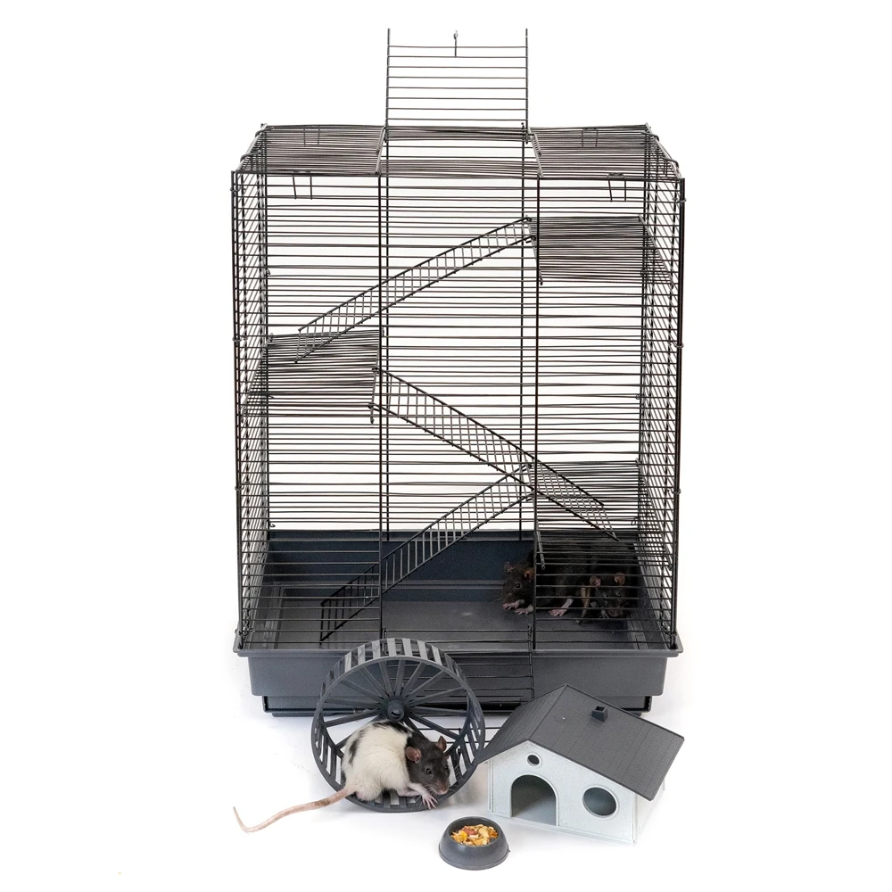 В комплекте: 3 металлических этажа, домик, коолесо диаметром 140мм. С бесщелевой (травмобезопасной) беговой дорожкой, миска диаметром 60мм.