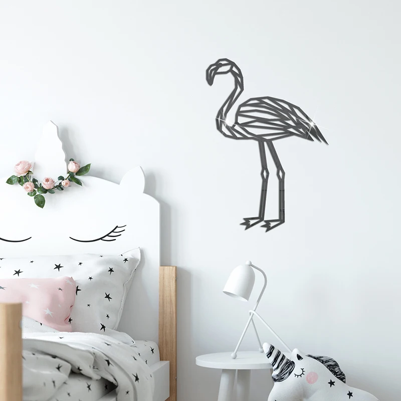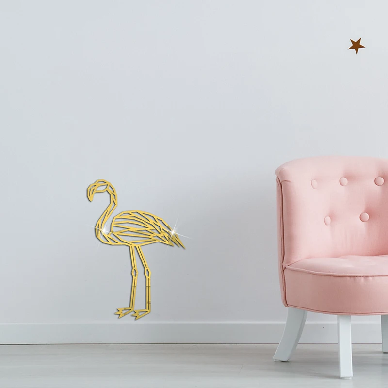 Настраиваемая линия животных акриловая Зеркальная Наклейка на стену Фламинго наклейки на стену для гостиной спальни дома самоклеющиеся украшения