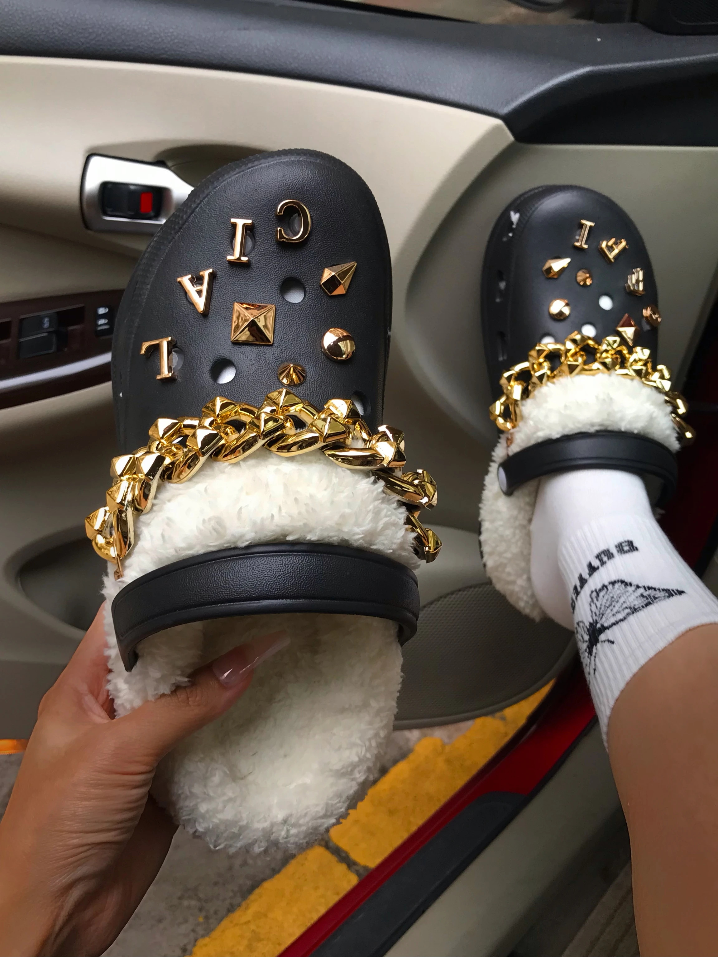 Модные элементы: модные хлопковые тапочки с металлическими буквами