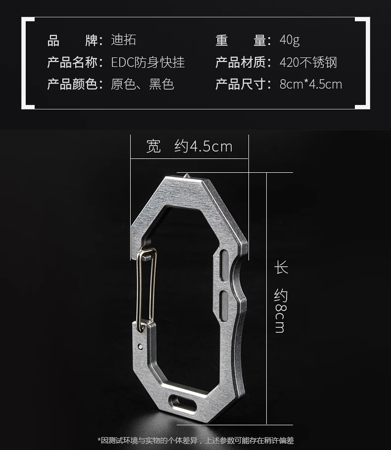 Открытый из нержавеющей стали Вольфрамовая сталь сломанные окна выживают быстро Висячие двойное отверстие брелок Рюкзак Пряжка замок EDCМатериал: 420 нержавеющая стальВес: 40 гЦвет: основной цвет, черныйРазмеры: 8*4,5 смОсобенности: брелок для ключей, сломанные окна, выживание, атака...Характеристики: высокопрочная эластичная Пряжка после 100000 испытаний на давление, плотный замок, прочный, можно легко повесить на ремень и кольцо для ключей.Ударная головка из вольфрамовой стали может легко сломать стекло, так как портативные EDC инструменты, не только универсальные и практичные, чехол опасности всегда может защитить себя.