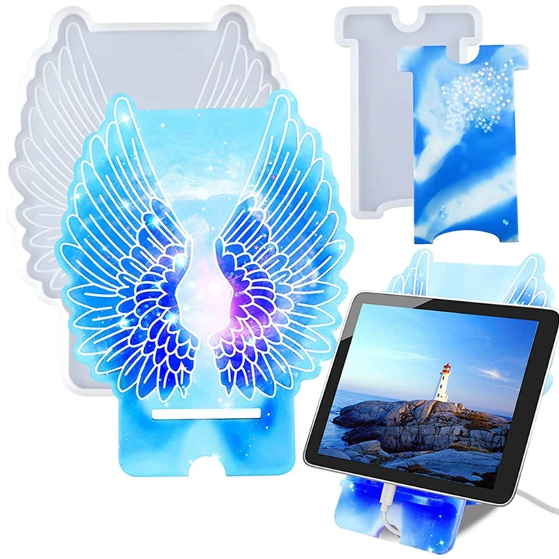 Обновленная форма держателя для мобильного телефона/планшета: Эта силиконовая форма из смолы имеет тонкие крылья ангела. Не только красивее, но и обеспечивает больше места для чехол телефона раскрывающегося списка случайно