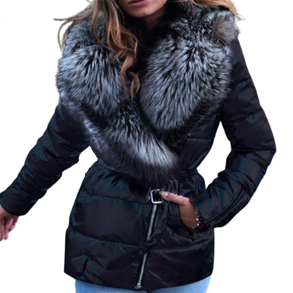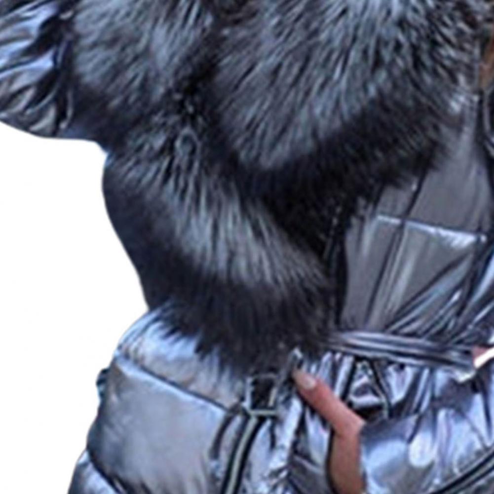 Дизайн воротника из искусственного меха придаст вашей шее теплое и пушистое ощущение. Боковая молния, пояс и яркая куртка сделают вас выглядеть очень свежей и стильной в холодную погоду.