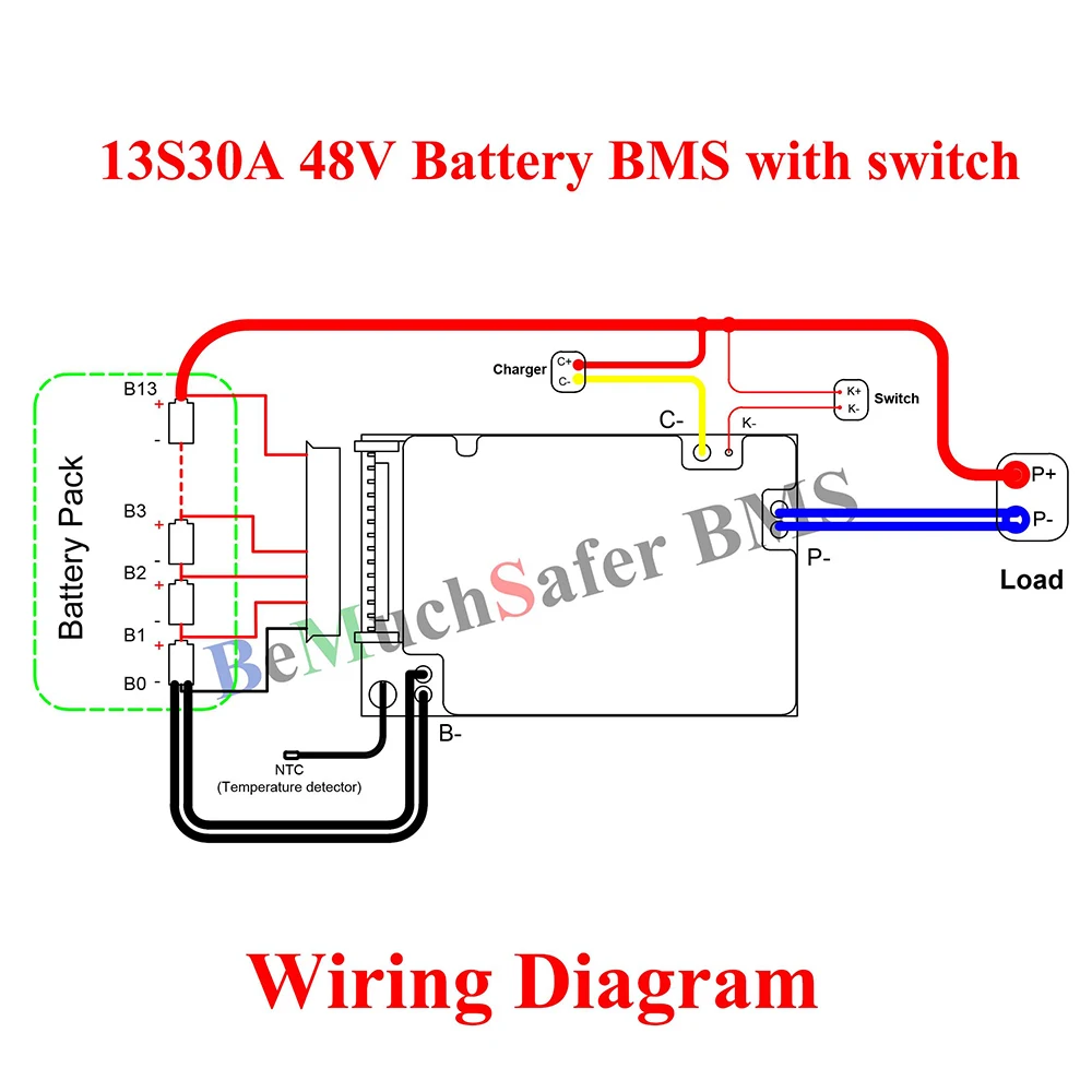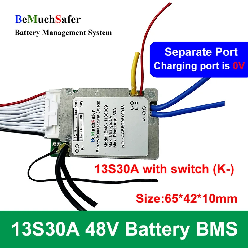 BMS: 48 В 13S30A BMS с переключателем отдельный порт
