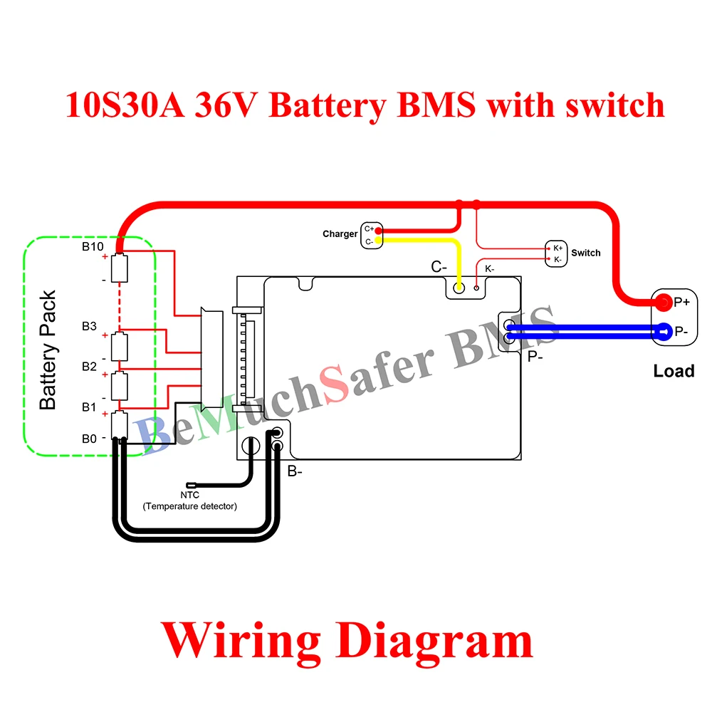 BMS: 36V 10S30A BMS с выключатель отдельный порт