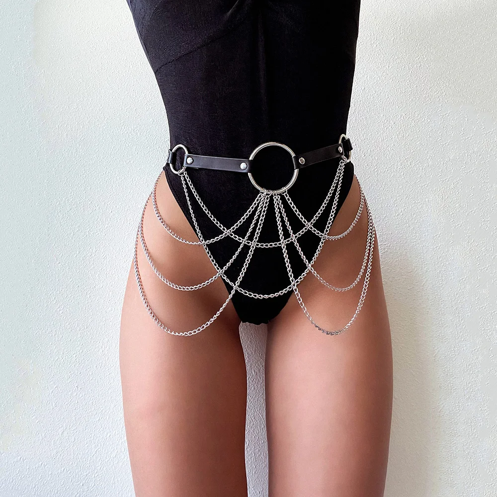 Goth, сексуальный кожаный бюстгальтер с цепочкой, топ, грудь, пояс, ведьма, готика, панк, Модные металлические праздничные украшения для девочек, аксессуары
