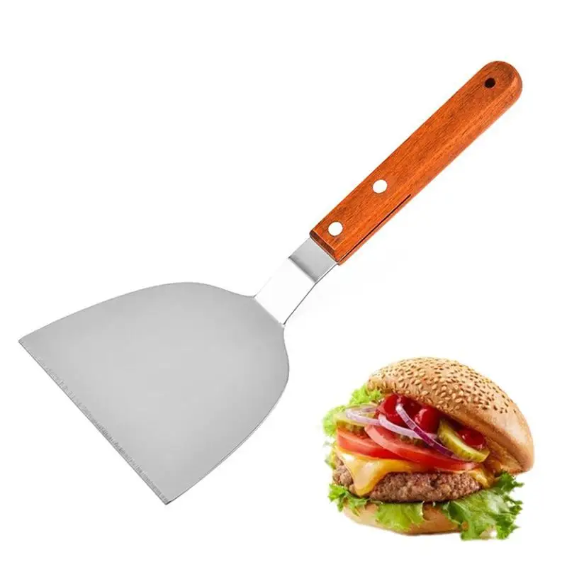 Большой шпатель для барбекю с деревянной ручкой из нержавеющей стали шпатель для жарки теппаняки шпатель для стейка шпатель