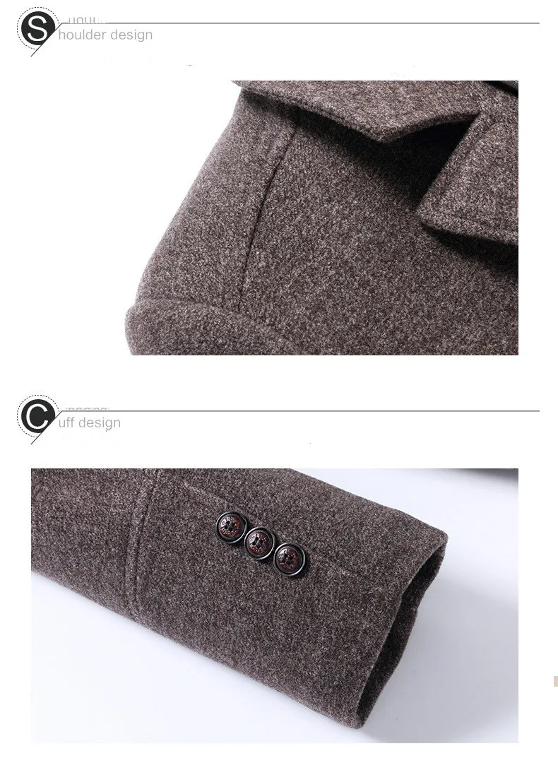 Осенне-зимнее мужское шерстяное пальто, теплое мужское шерстяное пальто, двойной воротник, шарф, съемный Повседневный однотонный толстый Тренч для мужчин