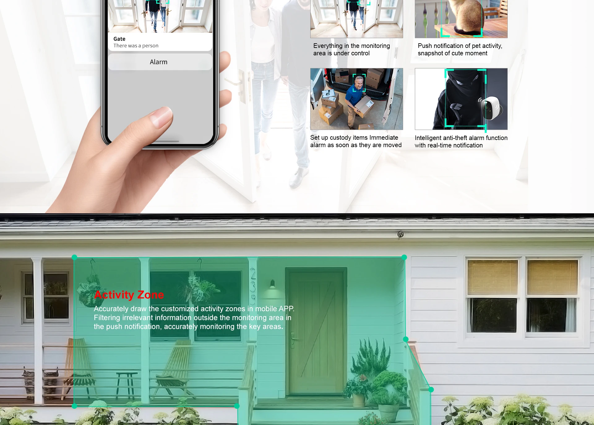 ◆ Поддержка гуманоидного обнаружения, электронный забор, умный толчок, захват домашних животных, звуковой сигнал и светильник