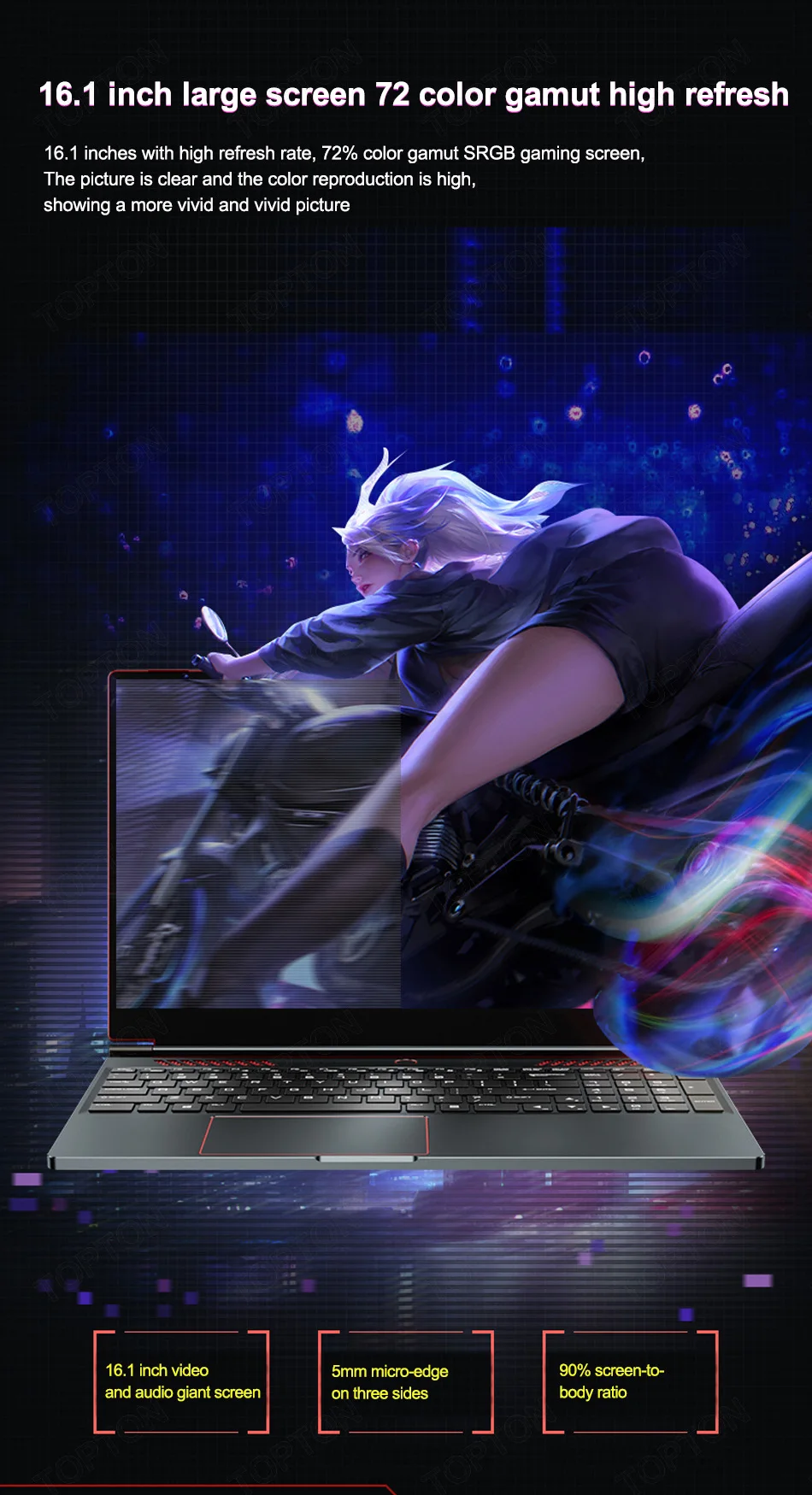 6. 16,1 дюймовый IPS большой экран с разрешением 1920x1080 60 Гц Частота обновления;